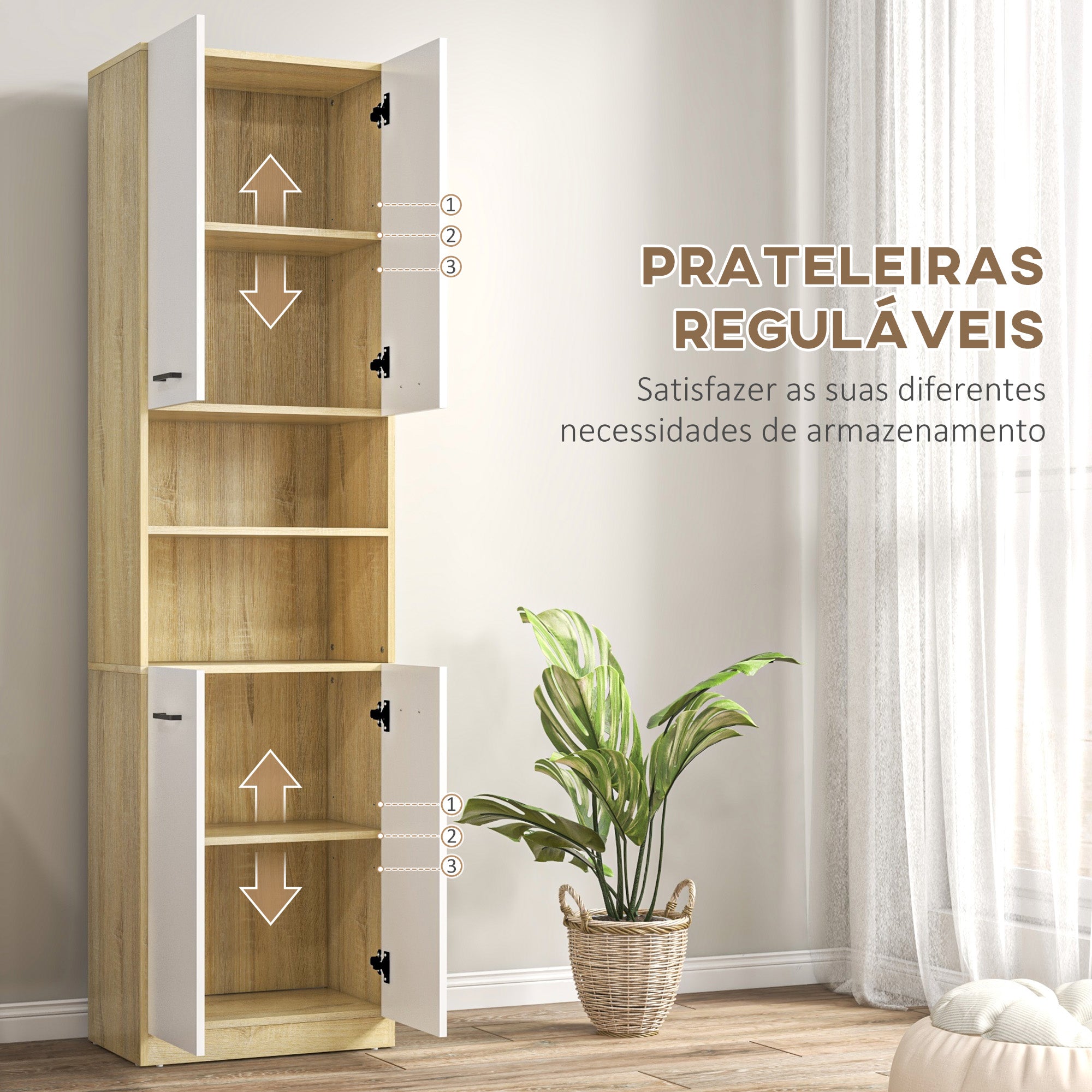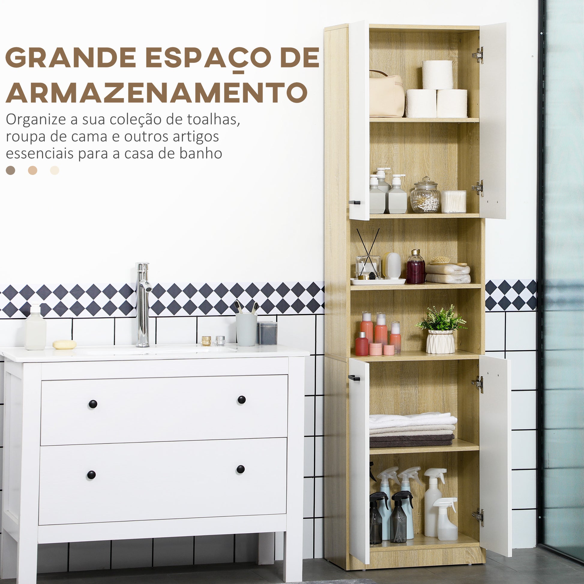 Armário Alto Casa de Banho 53x33,5x195,7 cm - Branco e Madeira