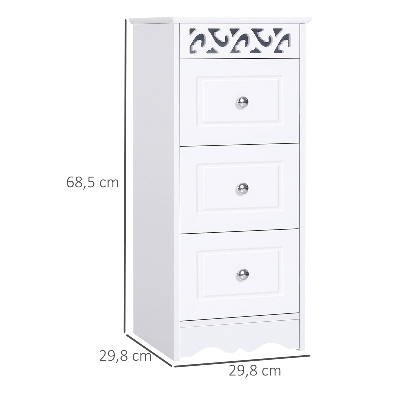 Armário Auxiliar Casa de Banho 3 Gavetas 29,8x29,8x68,5 cm Branco