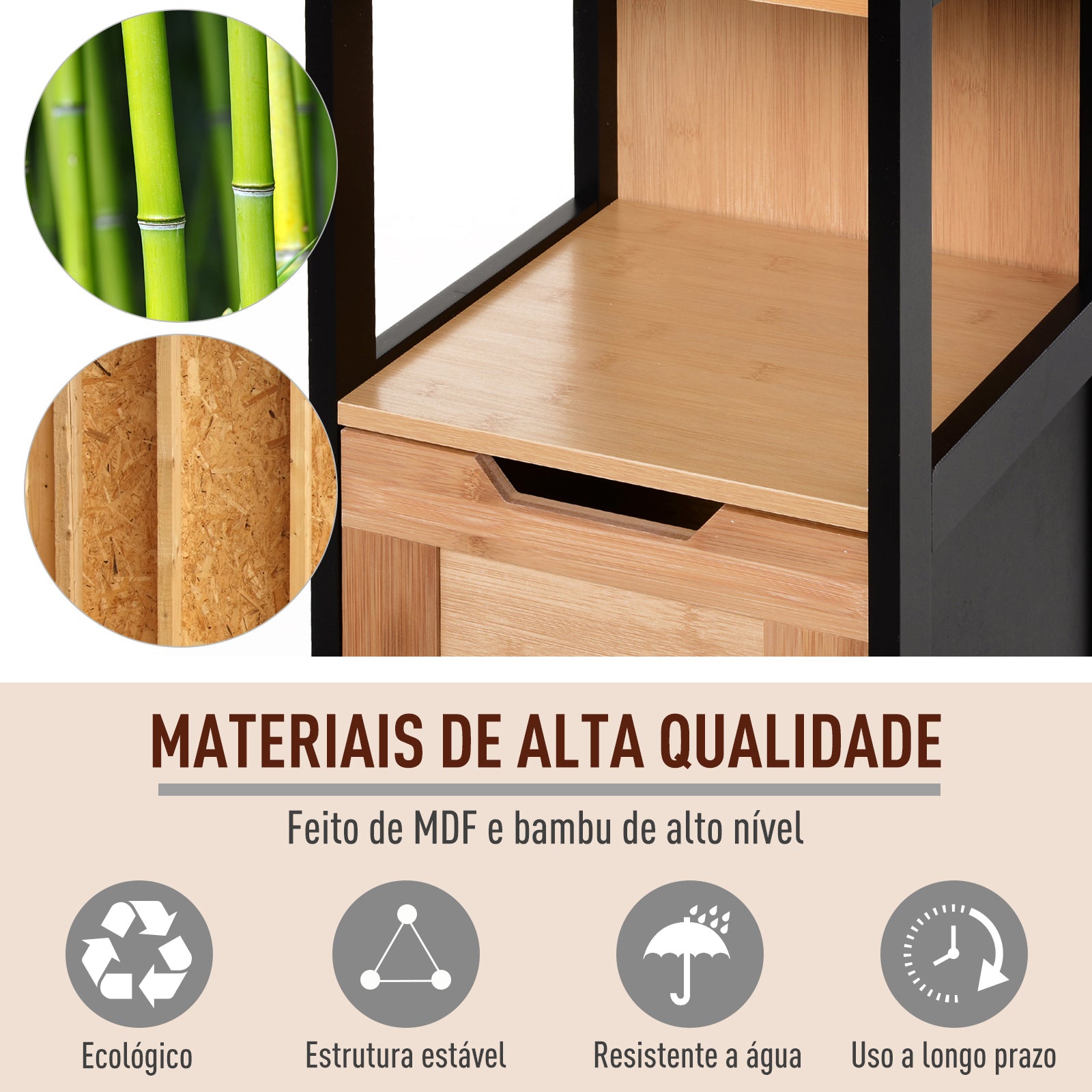 Armário Auxiliar para Banheiro – 30x30x144,3 cm – Negro – MDF e Bambu