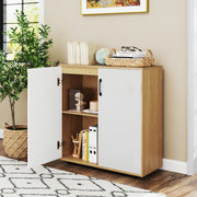 Armário de Arrumação de 2 Portas Moderno com Prateleira Ajustável de 5 Posições Armário Independente para Cozinha Escritório-Natural
