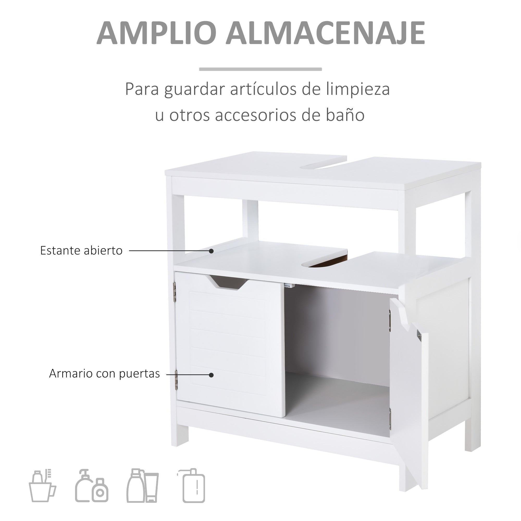 - Outras Especificações: Prateleira aberta, armário fechado com duas portas, dispositivo antiaderente, adequado para ambientes úmidos, furos da pia de 7x20 cm