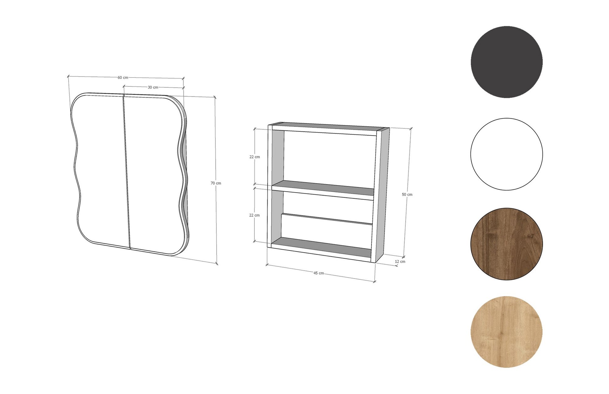 Armário de banheiro elegante com espelho, acabamento em nogueira, 50 x 12 x 45 cm | 100% painel duro, 18 mm de espessura | Perfeito para banheiros modernos e soluções de armazenamento