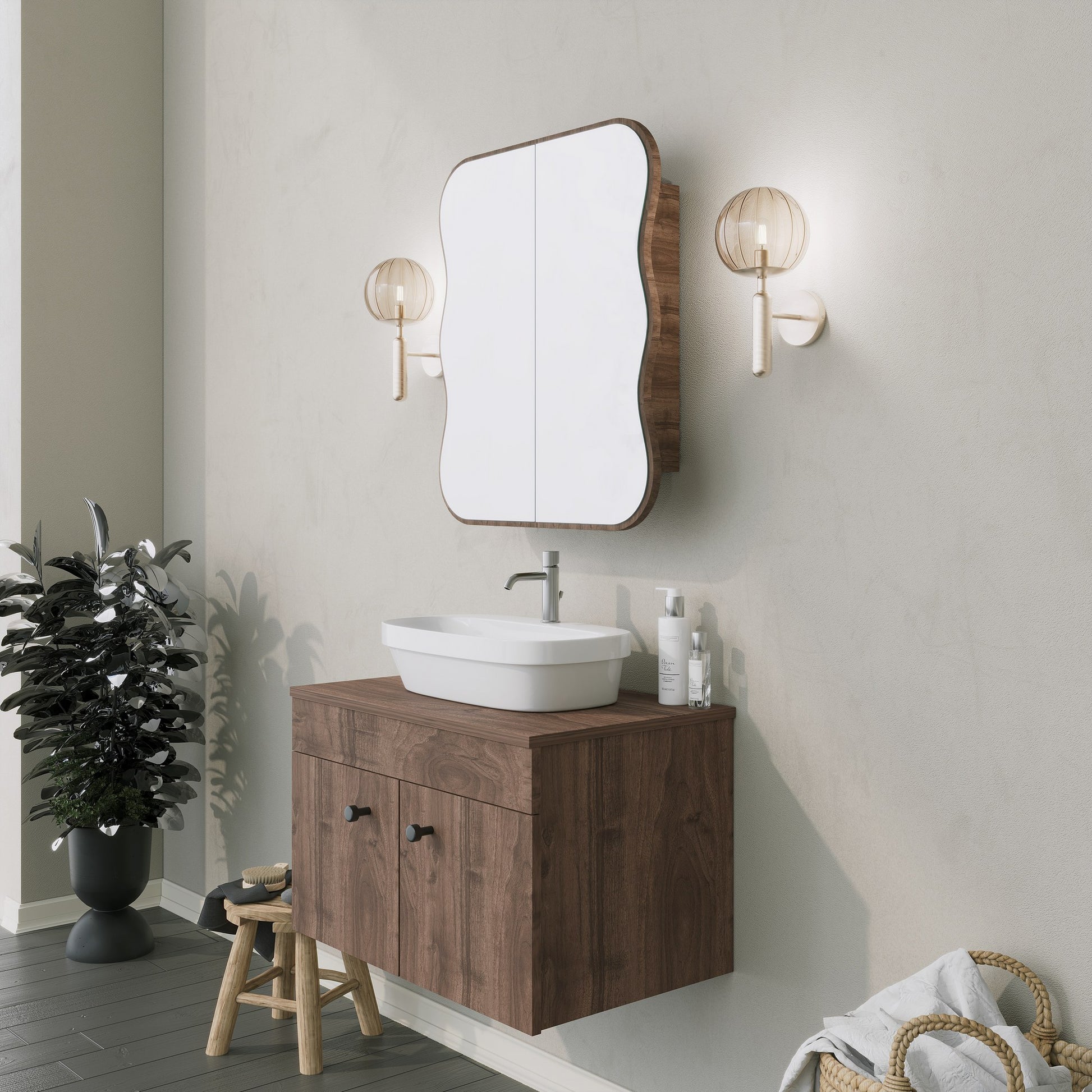 Entre na sua casa de banho e seja recebido pela pura elegância e sofisticação do nosso armário de casa de banho. O seu design elegante e a(s) cor(es) rica(s) de nogueira cativarão instantaneamente os seus sentidos, criando uma atmosfera serena e convidativa que nunca mais quererá abandonar.