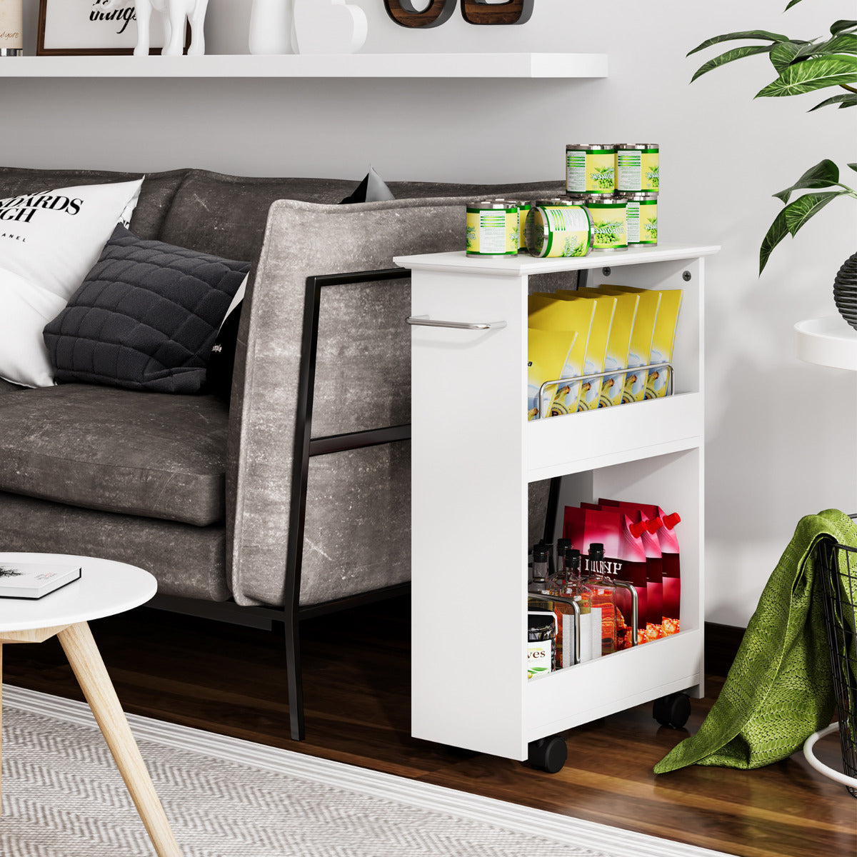 Cansado de ter um quarto desarrumado? Este armário de casa de banho estreito, com grande capacidade apesar das suas dimensões reduzidas, é a escolha perfeita para manter a sua casa organizada e limpa. Feito de MDF de alta qualidade, este carrinho de armazenamento é resistente o suficiente para uso diário e está pronto para durar por muitos anos. Com dois níveis de prateleiras e um amplo topo, oferece bastante espaço de armazenamento para vários itens. As quatro rodas flexíveis permitem movimentar este carrinho de cozinha para onde quiser, enquanto as duas rodas bloqueáveis garantem estabilidade a qualquer momento. Além disso, o design versátil e conciso torna-o perfeito para vários espaços, como casa de banho, cozinha e sala de estar. Não espere mais! Leve-o para casa agora!