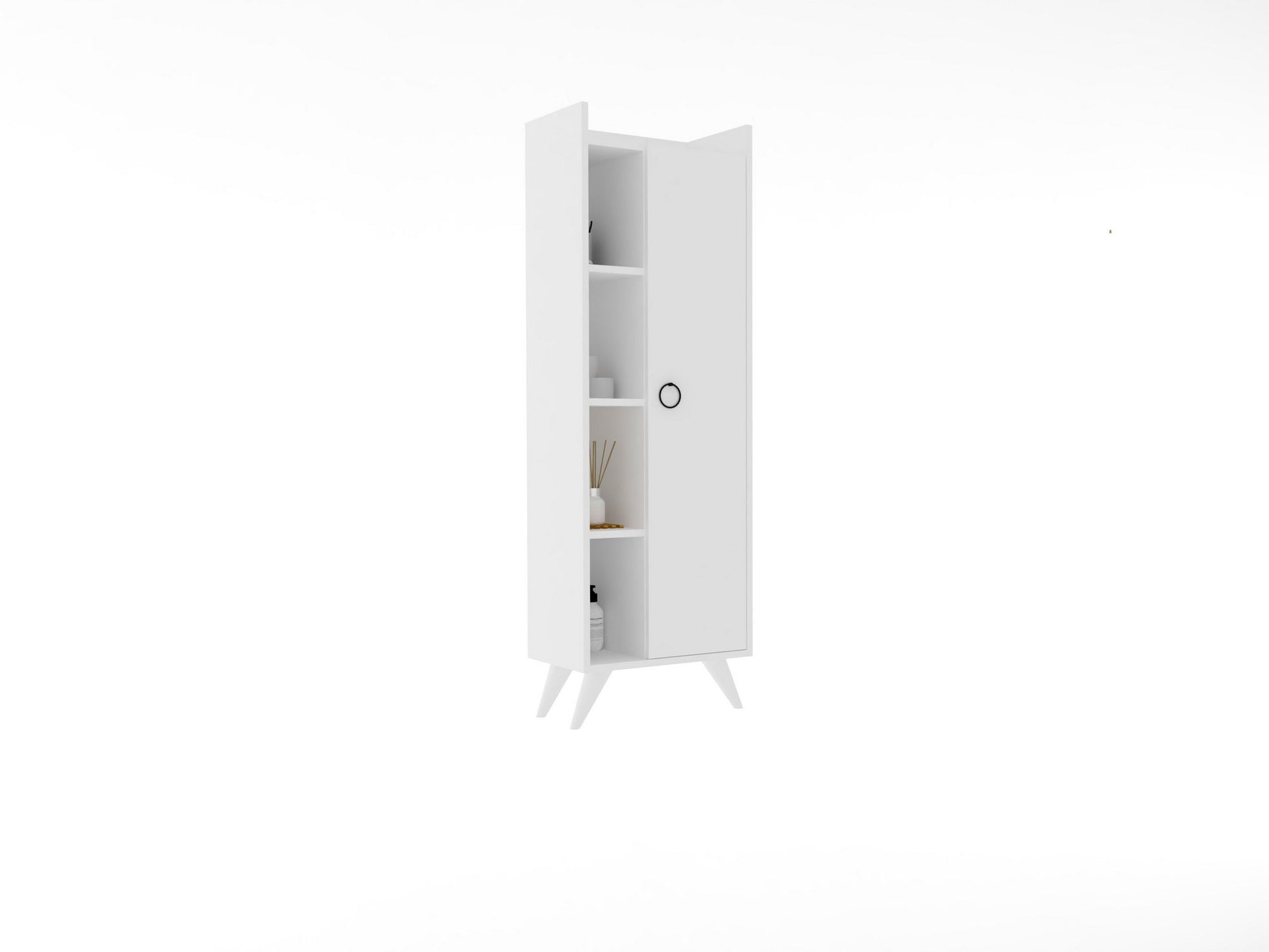 O armário apresenta uma bonita cor branca, acrescentando um toque de elegância e sofisticação à sua casa de banho. O seu design elegante e minimalista complementa sem esforço qualquer decoração existente, criando uma atmosfera harmoniosa e convidativa.