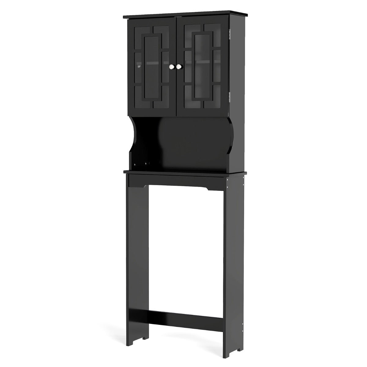 Armário de Casa de Banho Sobre o WC com 3 Prateleiras e 2 Portas Preto