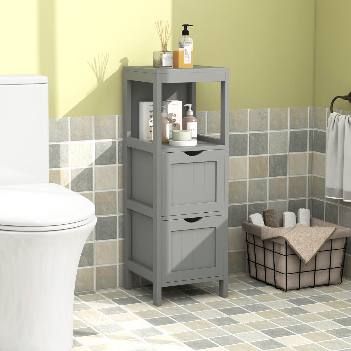 Armário de Chão para Casa de Banho com 2 Gavetas Extraíveis Independentes - Cinzento