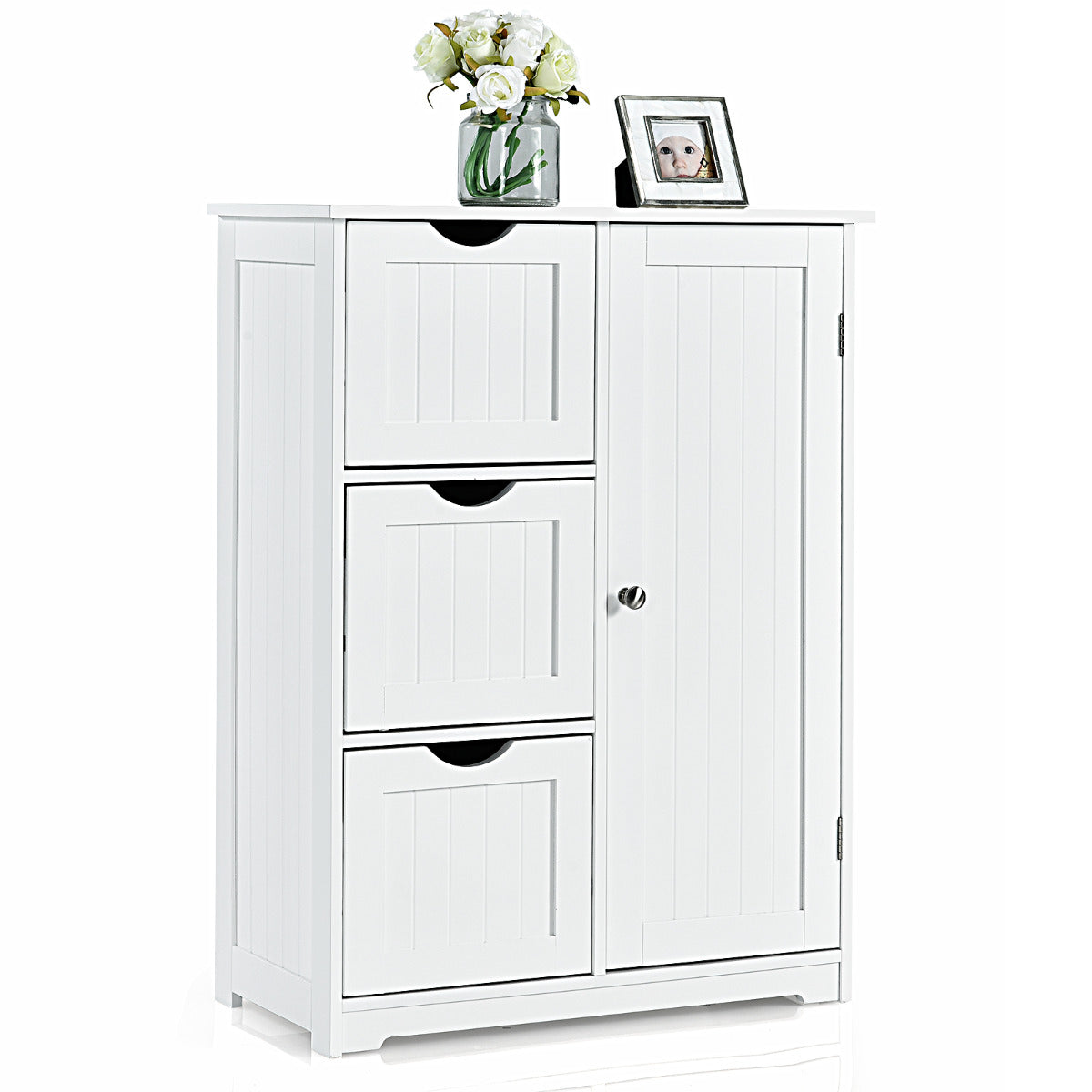 Armário de Chão para Casa de Banho com 3 Gavetas e 1 Armário Prateleira Ajustável Móvel de Arrumação para Sala Quarto 60 x 30 x 81cm Branco