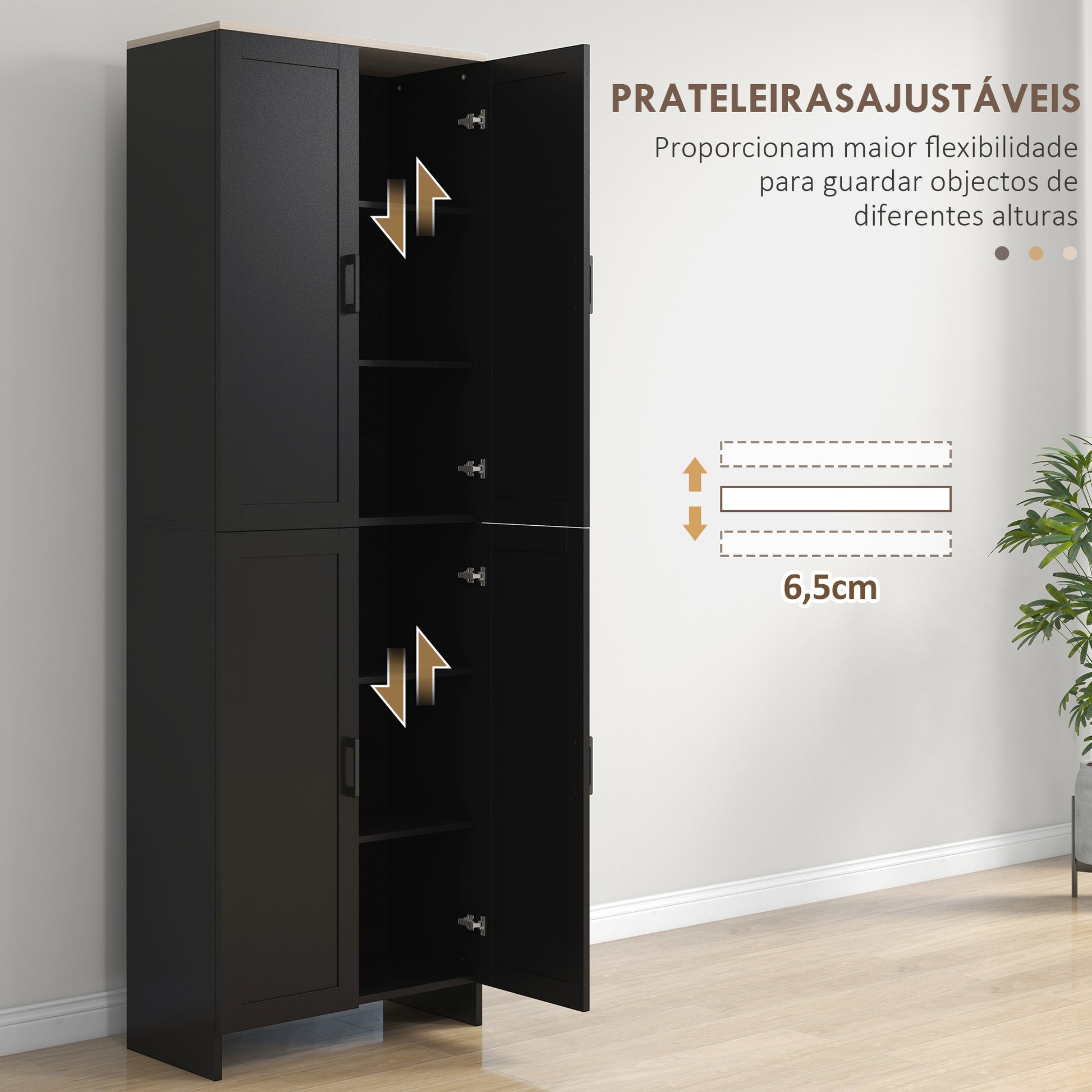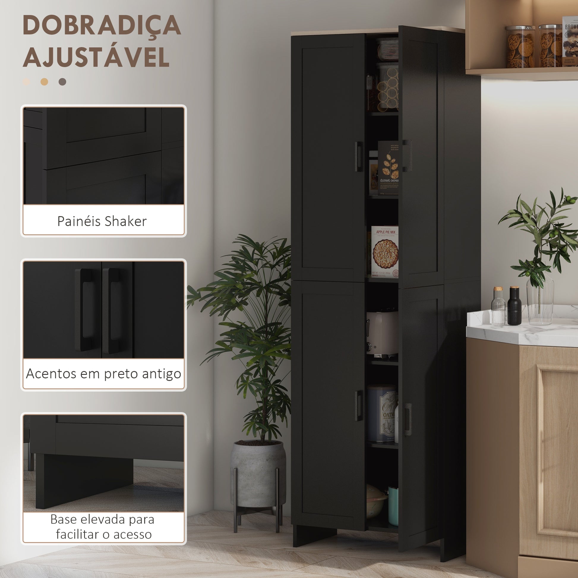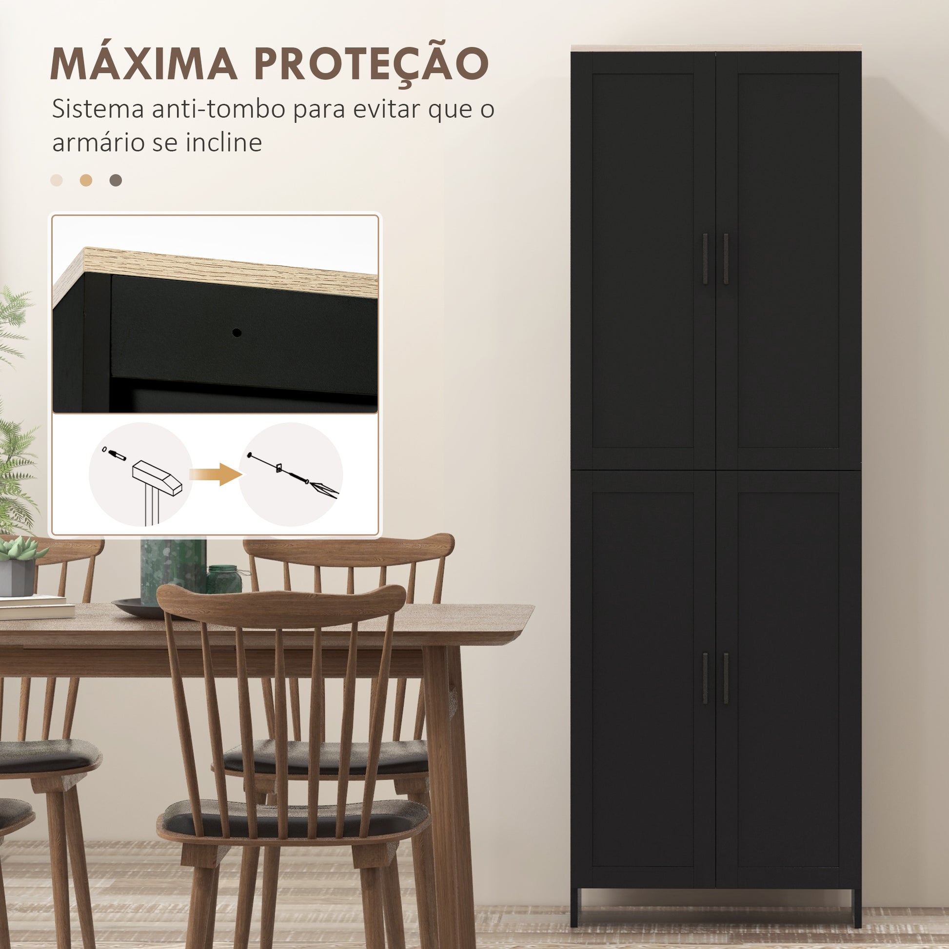Armário de Cozinha com 4 Portas e Prateleiras Ajustáveis 60x30x170,5 cm - Preto