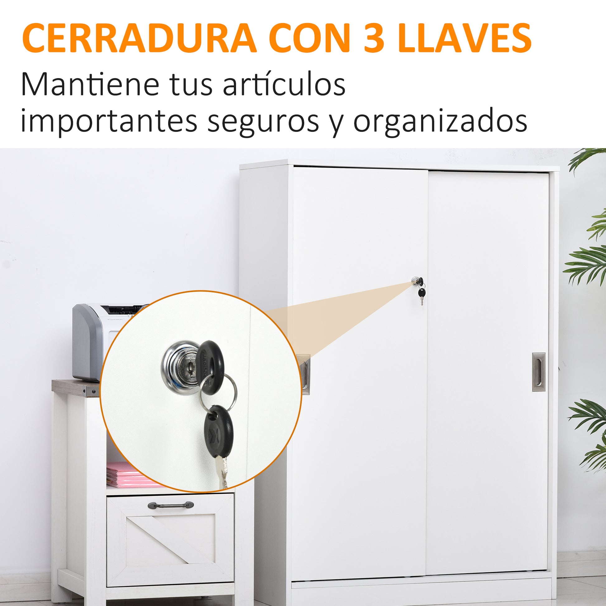 - Benefícios: Portas deslizantes com fechadura para manter os documentos seguros. 3 prateleiras internas para armazenamento organizado.