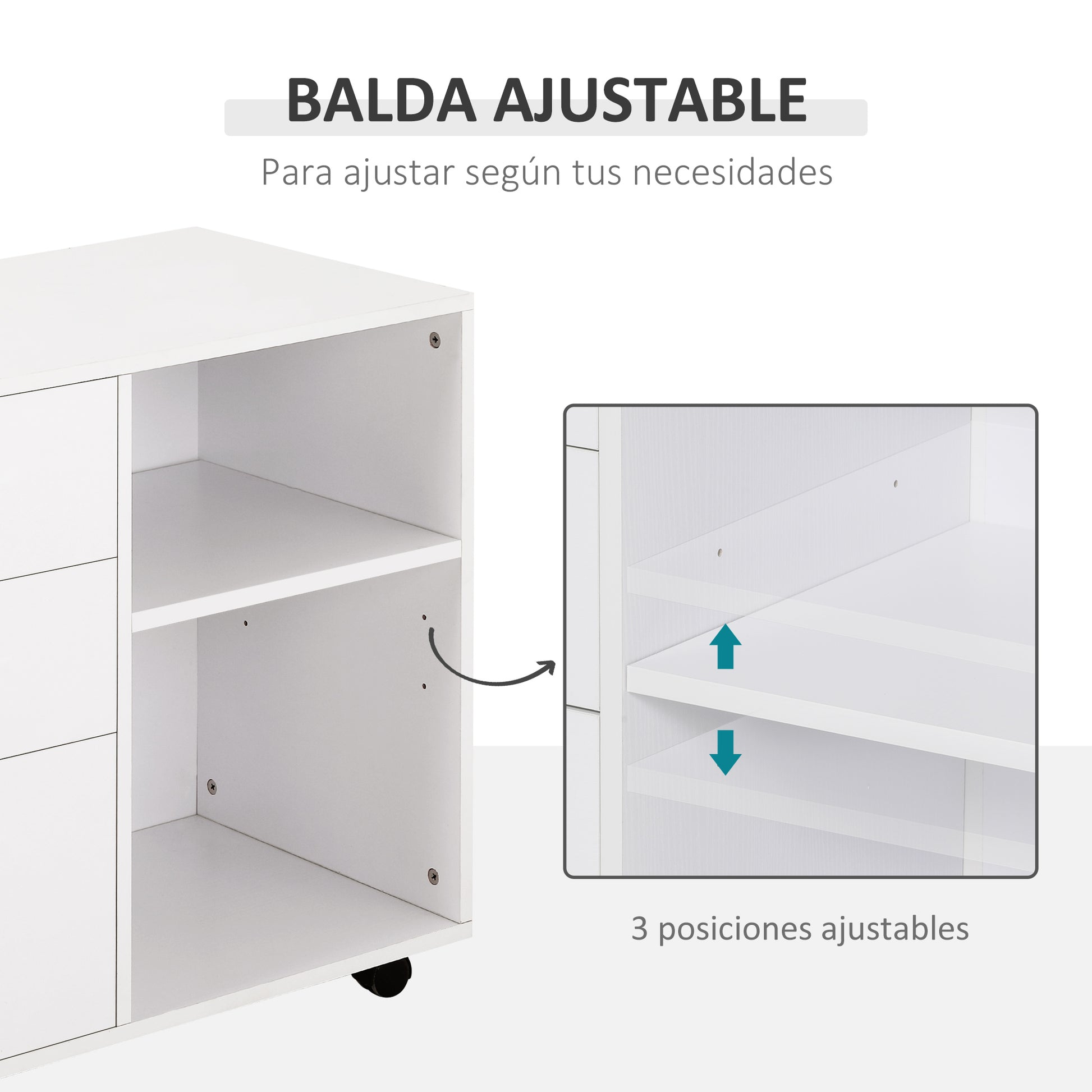 Armário de Escritório com 3 Gavetas e Prateleira Ajustável 80x40x65cm Branco