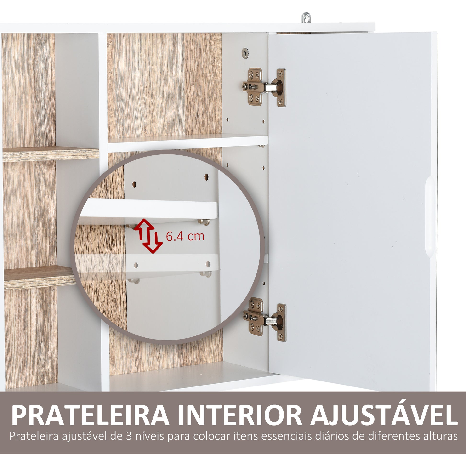Armário de Espelho com Prateleiras Ajustáveis 60x14.5x49.4 cm - Branco e Cor de Carvalho