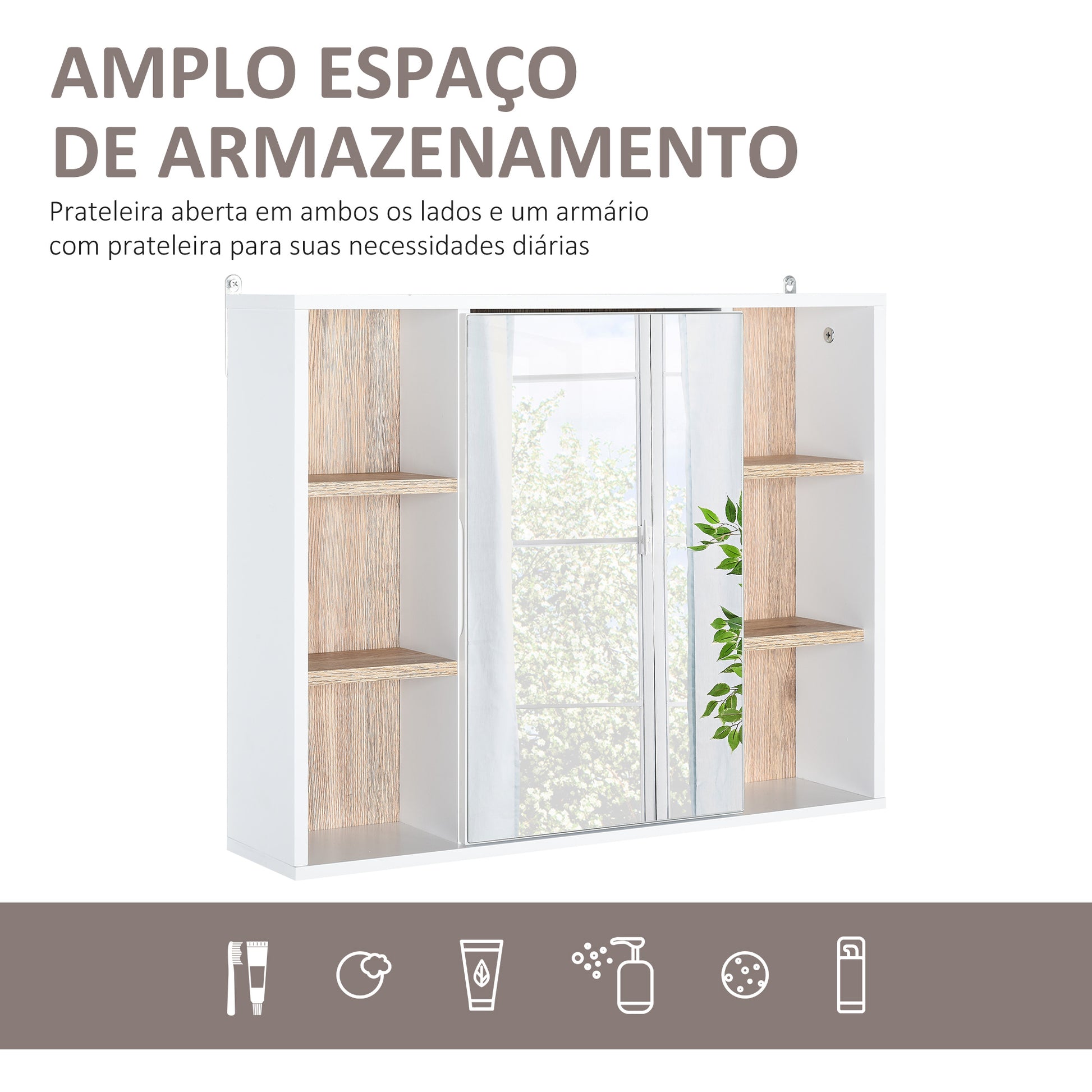 - Benefícios: Espelho de banheiro com armazenamento interno, prateleiras laterais para conveniência e design compacto para otimização do espaço.