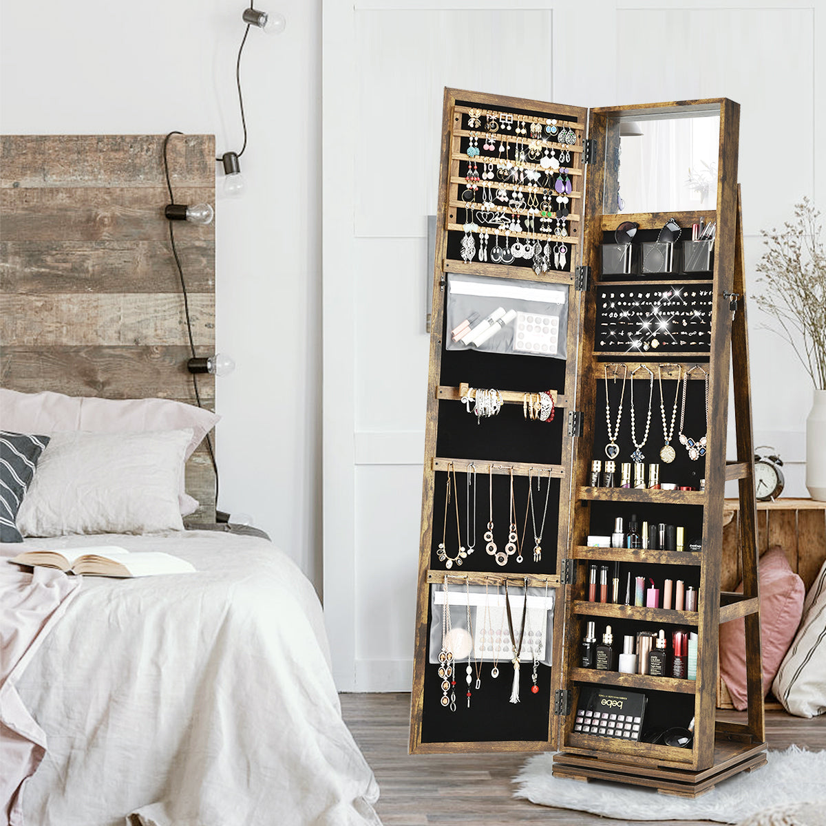 - Armário de jóias 2 em 1 com espelho: este armário de jóias com espelho é muito prático para te vestires. O espelho de corpo inteiro é feito em vidro de alta qualidade e permite-te ver-te da cabeça aos pés e combinar as jóias com o conjunto.