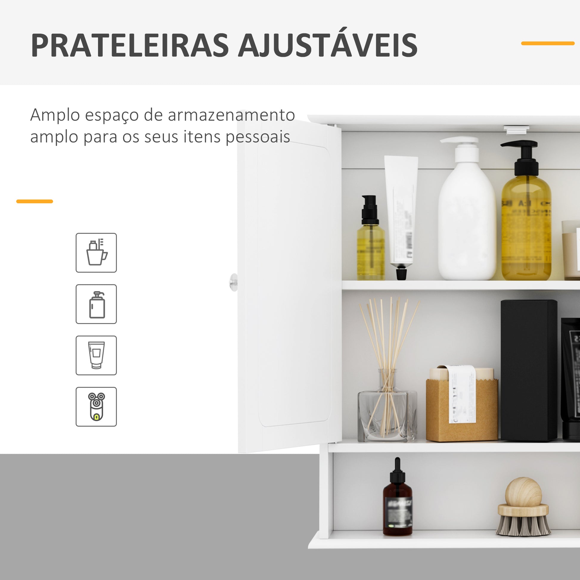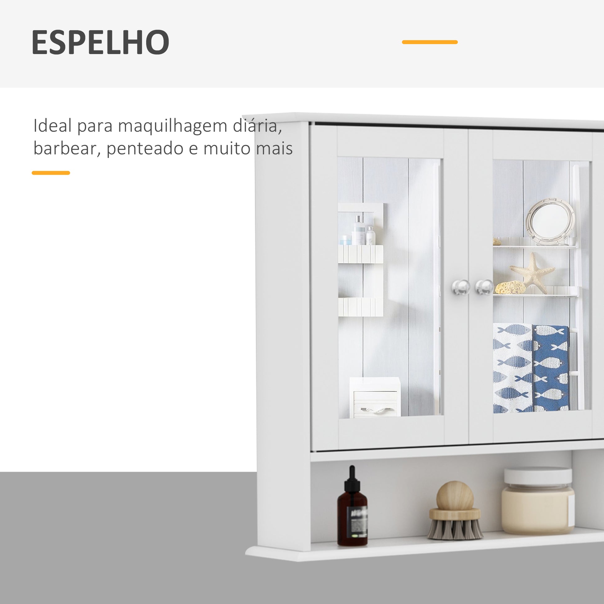 - Benefícios: Portas com espelho duplo para maquilhagem ou barbear diário. Prateleira ajustável e prateleira inferior para armazenar itens de vários tamanhos.