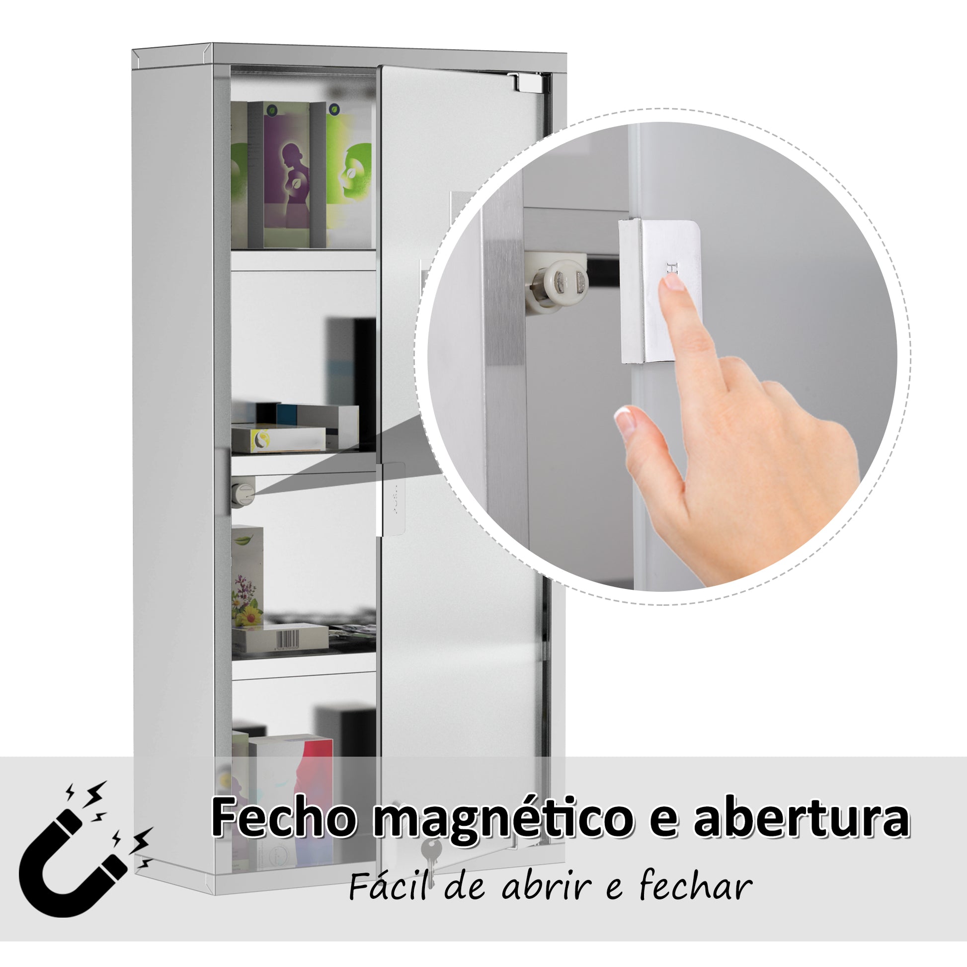 Armário de Remédios em Aço Inoxidável 60x30x12cm - Cor Plateado