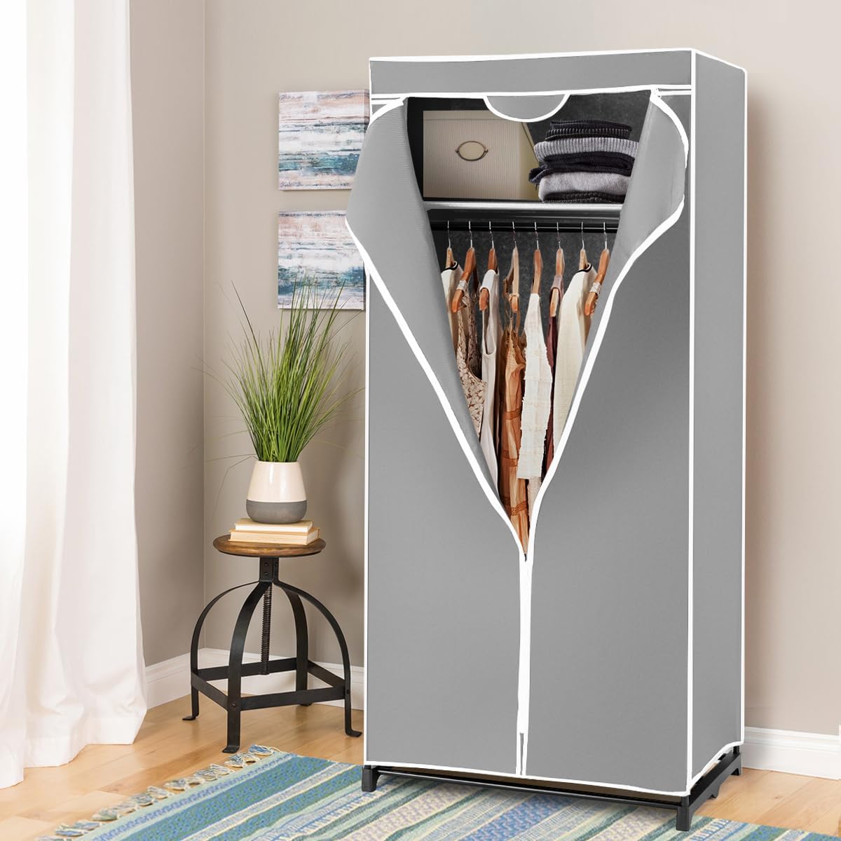 Armário de Tecido Dobrável com Barra para Pendurar Roupa Organizador 75x50x170cm Cinzento