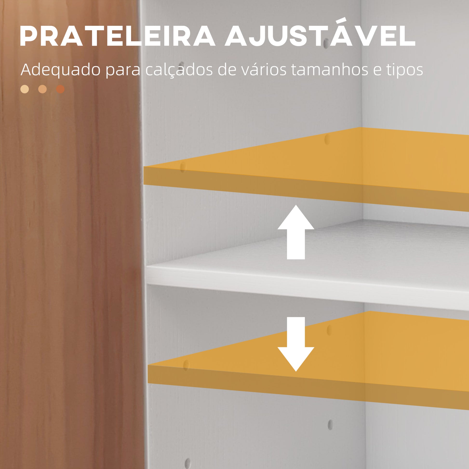 Este versátil armário de madeira natural é perfeito para manter a sua casa organizada e elegante. Com medidas de 83x30x90 cm, oferece um amplo espaço de armazenamento para até 12 pares de sapatos e diversos objetos.