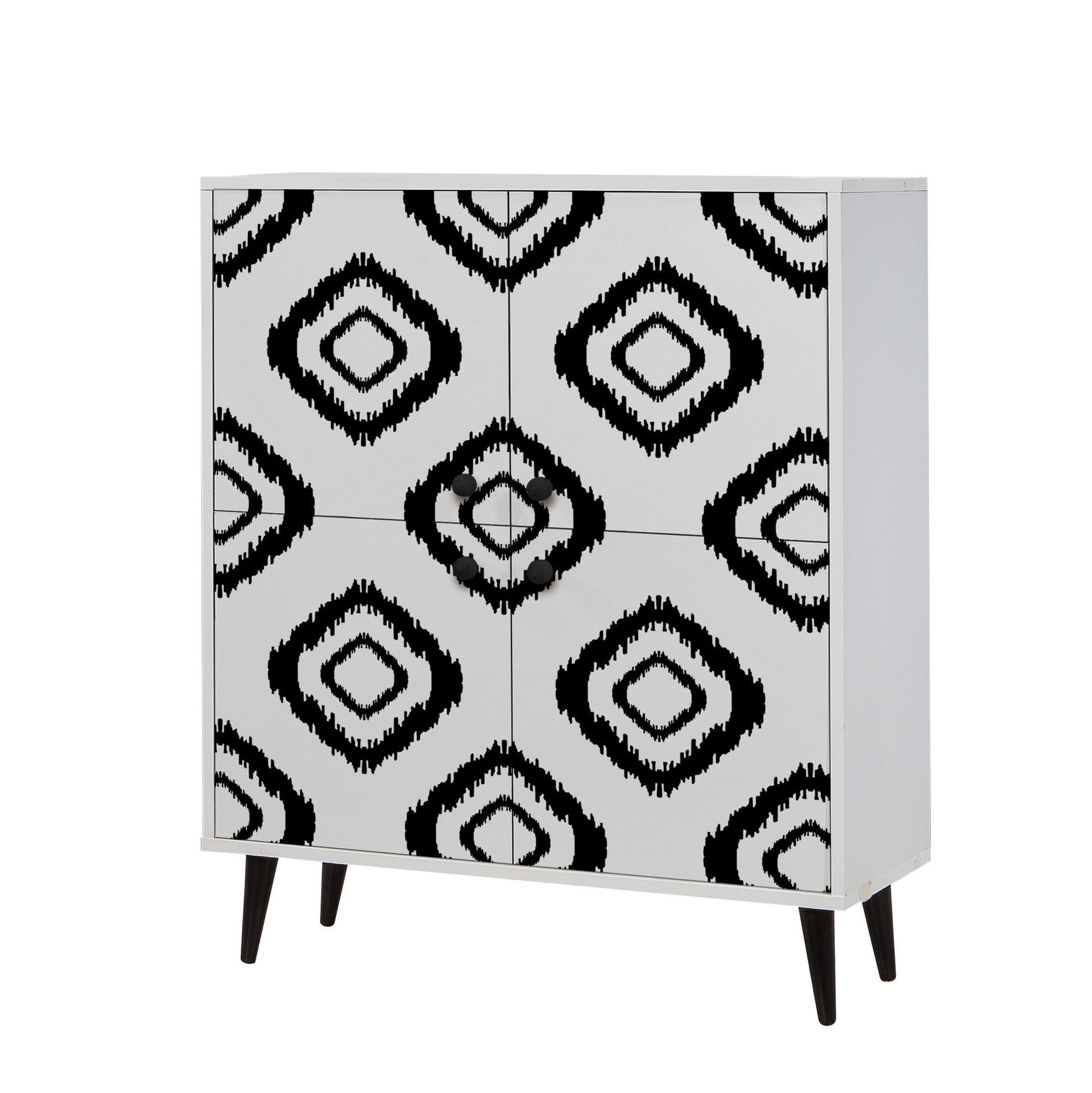 Com pernas de carpa e puxadores de metal e corda, este armário exala sofisticação e estilo. A combinação das cores branca e preta dá um toque contemporâneo, tornando-o perfeito para qualquer decoração.
