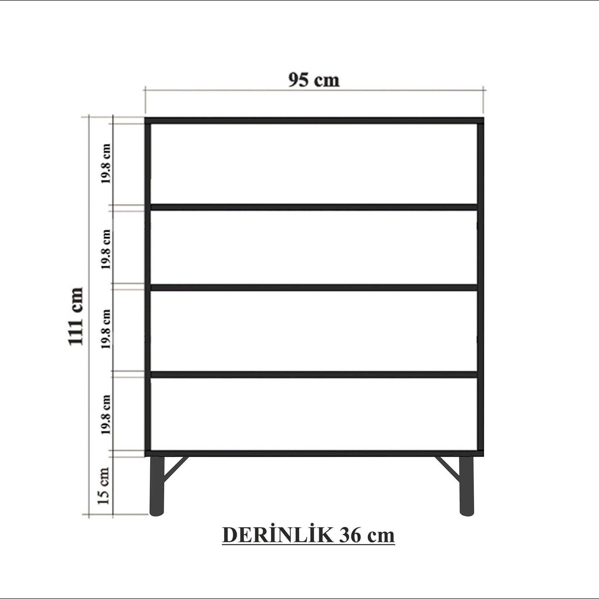 Fabricado a partir de painéis de partículas 100% revestidos a melamina, este armário foi concebido para durar. A espessura de 18 mm garante robustez e estabilidade, tornando-o perfeito para guardar os seus pertences durante muitos anos. As elegantes pernas metálicas não só fornecem apoio adicional, como também dão um toque moderno ao seu design.
