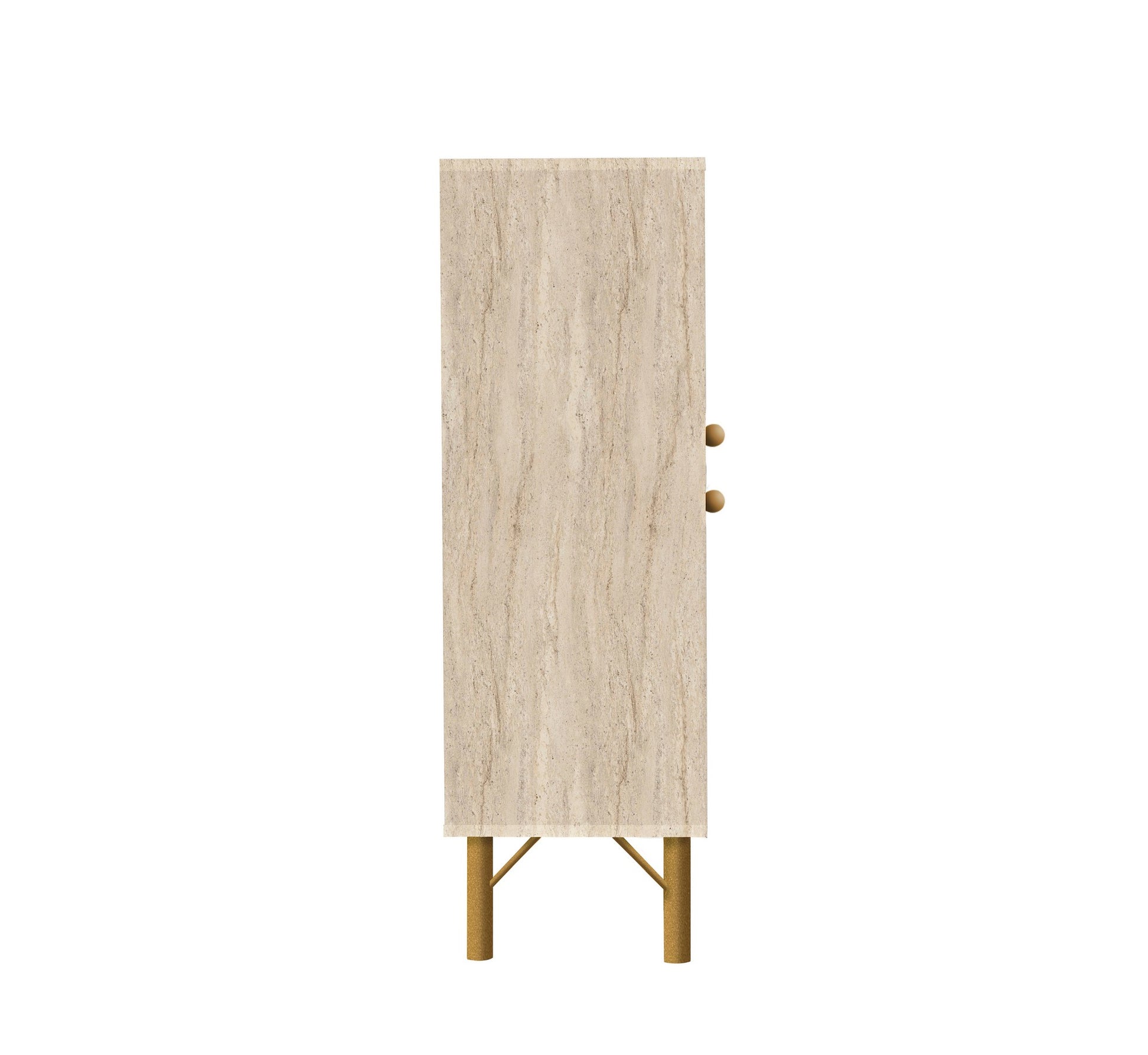 Transforme seu espaço com nosso deslumbrante Armário Multiuso na cor mármore Travertino. Esta peça requintada não é apenas um armário, é uma declaração de estilo e sofisticação. O painel de partículas revestido em melamina 100% garante durabilidade e longevidade, enquanto as pernas de metal adicionam um toque de elegância moderna.