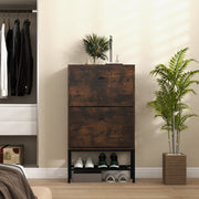 - Armazenamento de Sapatos Flexível: Este armário sapateira está desenhado com 2 gavetas rebatíveis que são fáceis de abrir e fechar. Com prateleiras ajustáveis e removíveis, as gavetas podem adaptar-se a diferentes tipos de calçado, desde sandálias rasas até saltos altos.