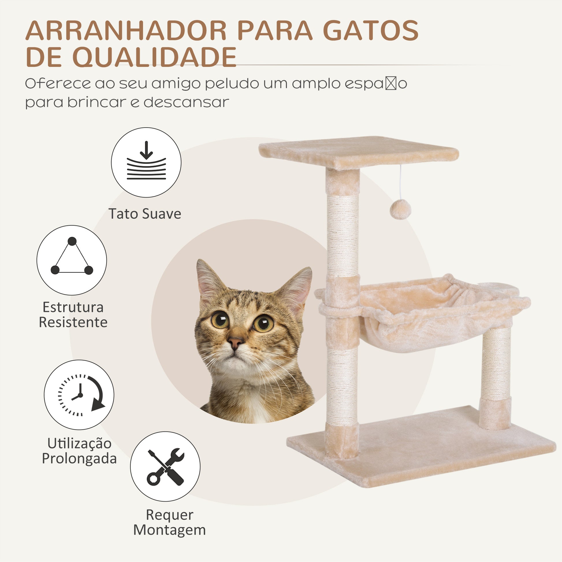 - Benefícios: Poste de sisal para afiar as garras, estrutura resistente e confortável estofamento em pelúcia