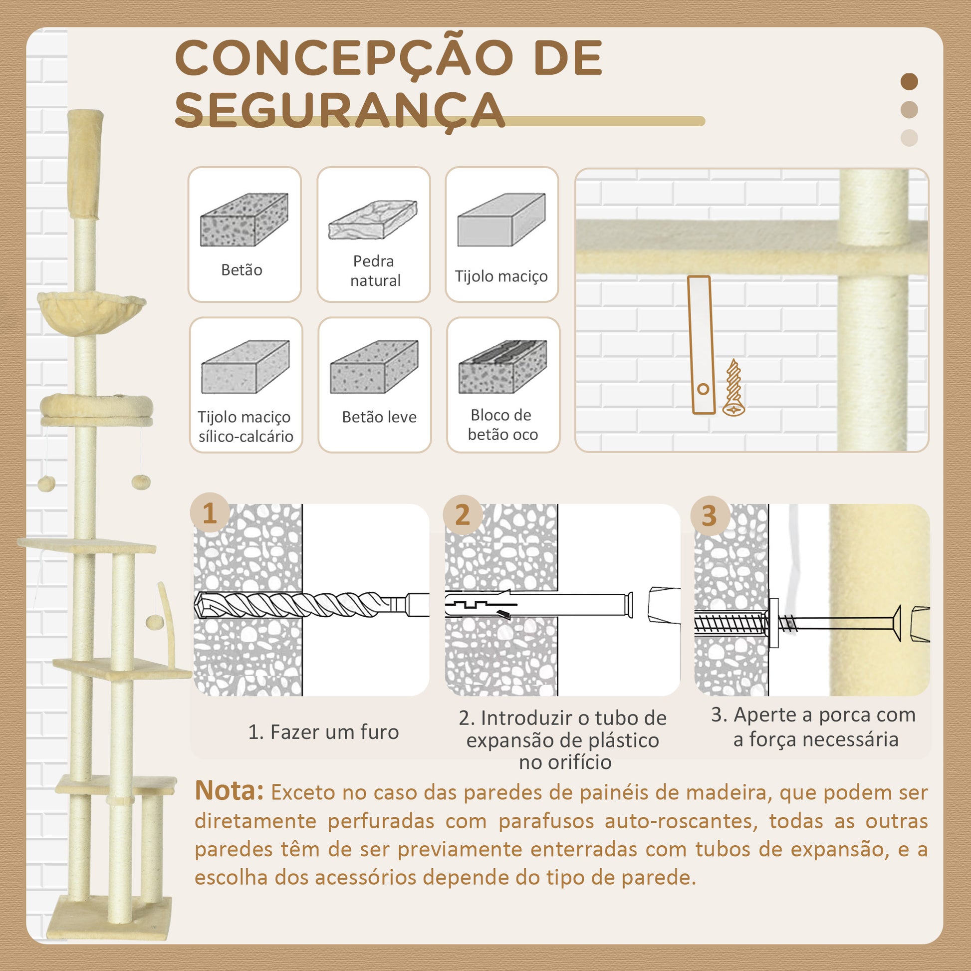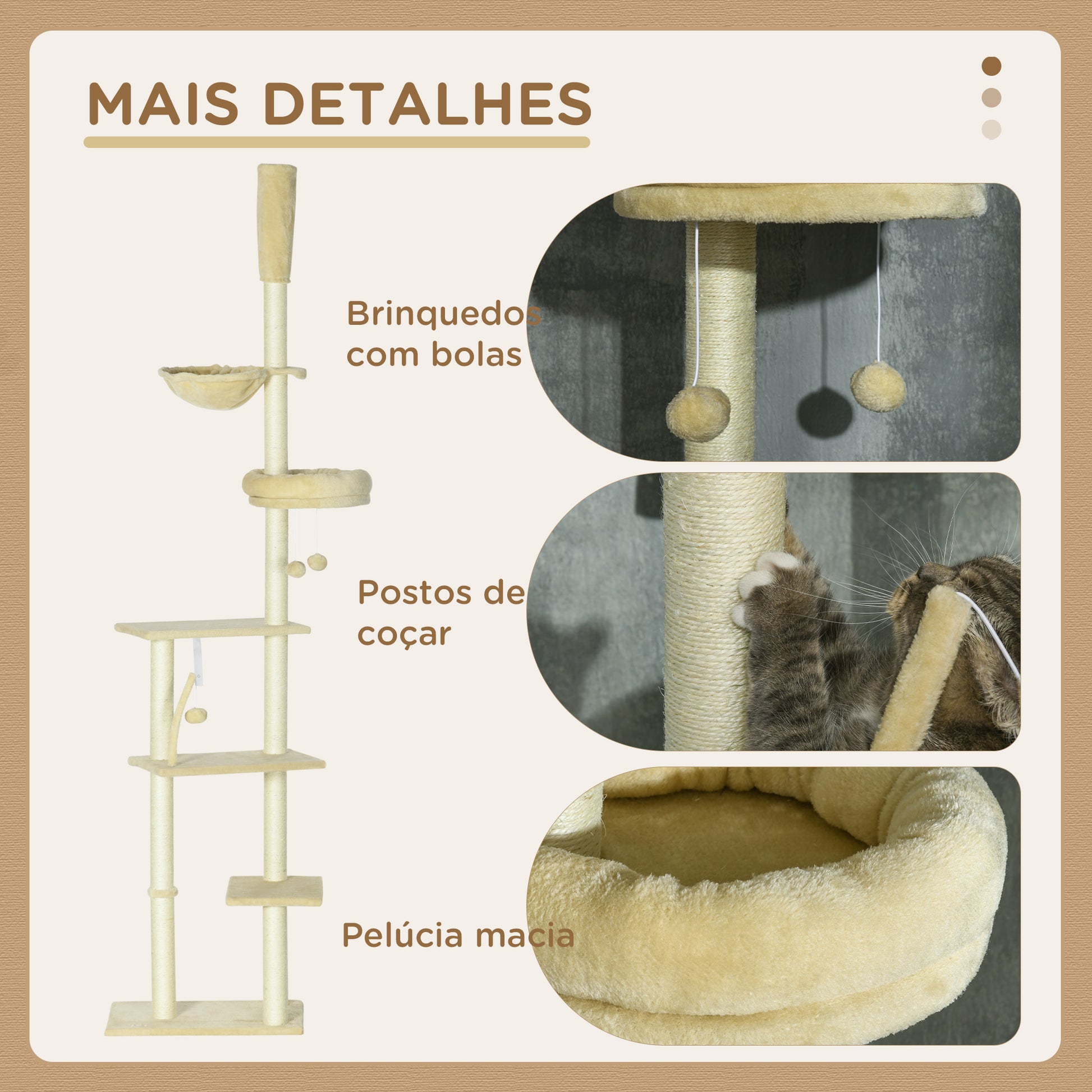 Arranhador para Gatos Bege 54x34x230-250 cm com Altura Ajustável e Múltiplas Plataformas