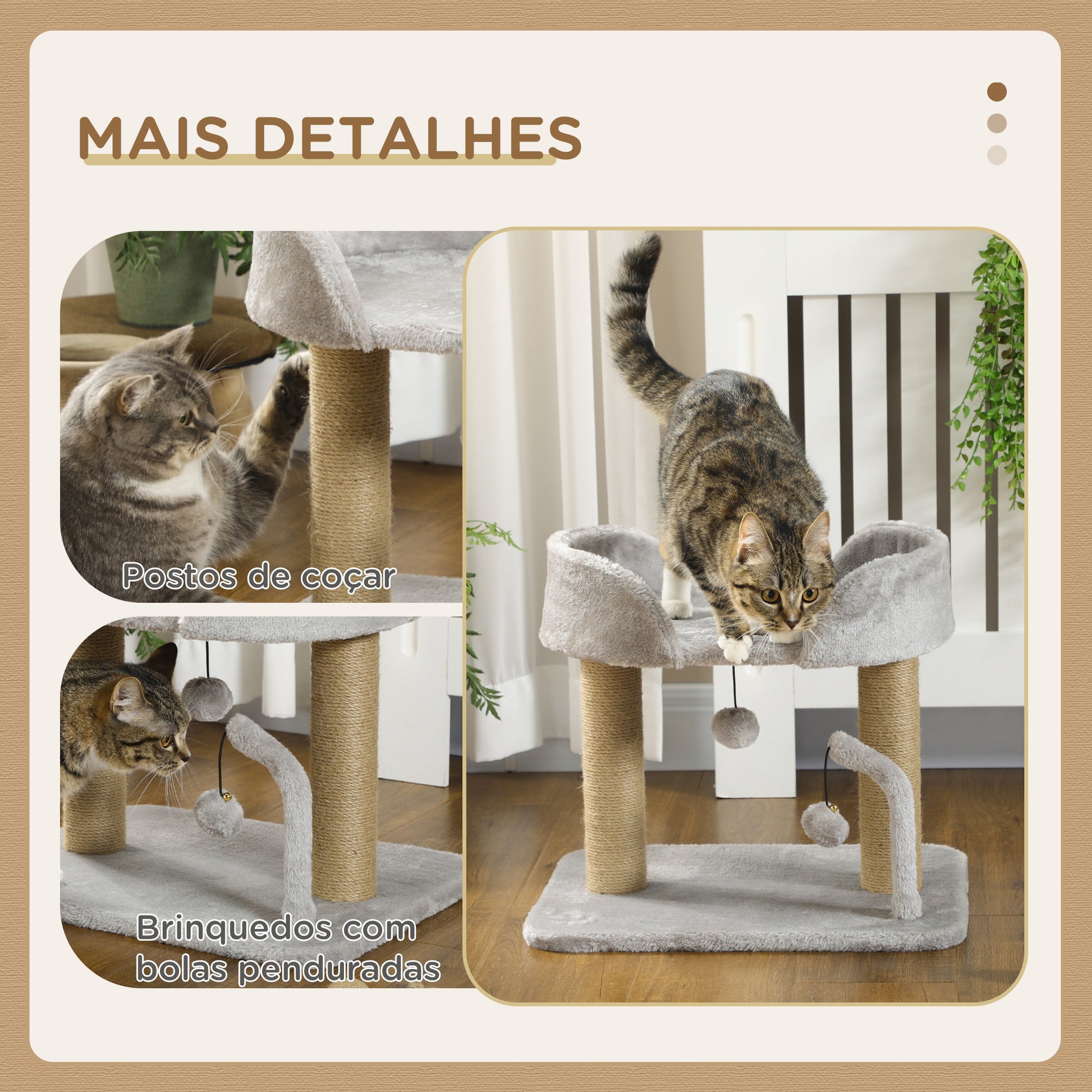 Arranhador para Gatos Cinza 48x38x42 cm - Postes de Juta e Cama Confortável