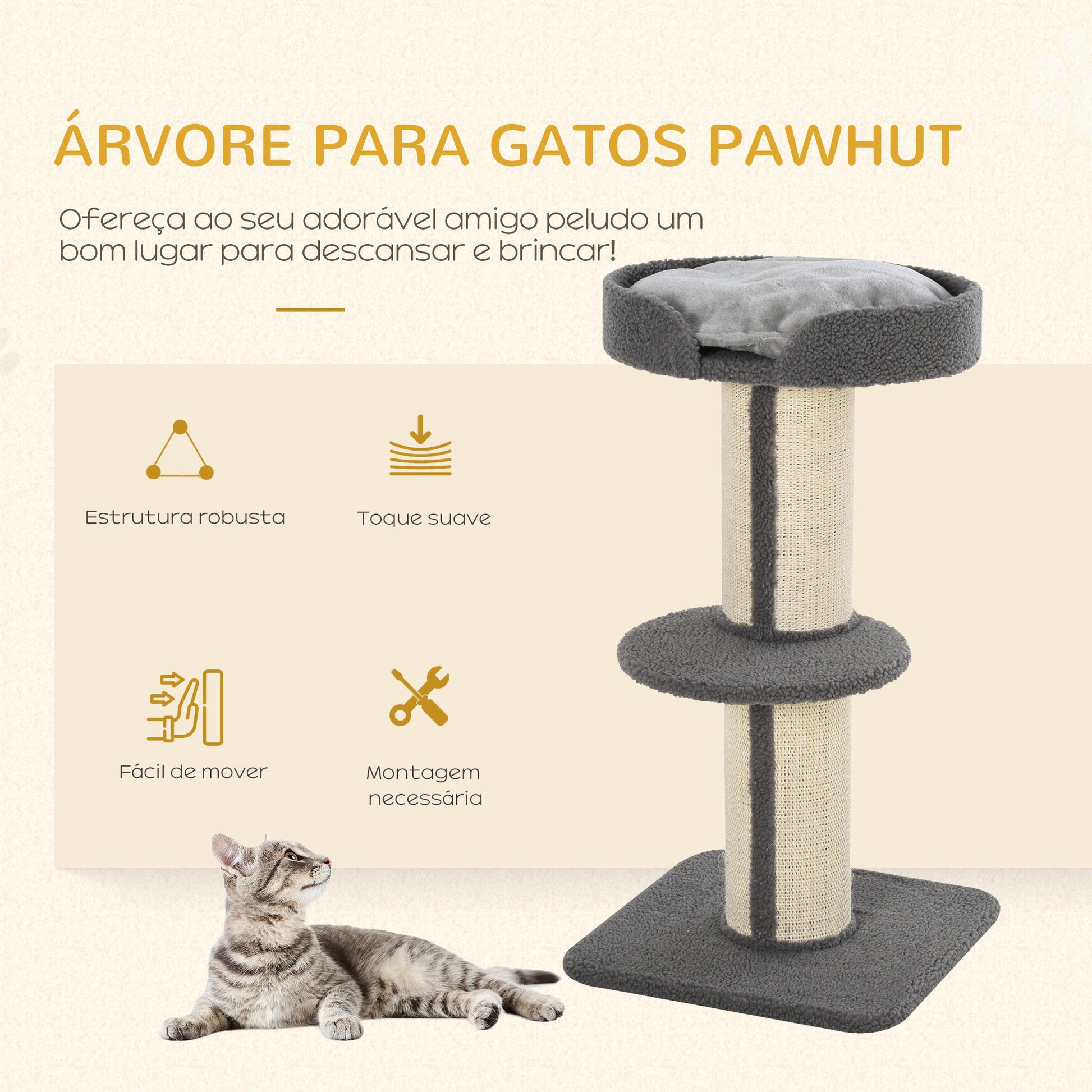 - Benefícios: Poste de sisal para afiar garras, cama confortável para descanso e plataforma para trepar.