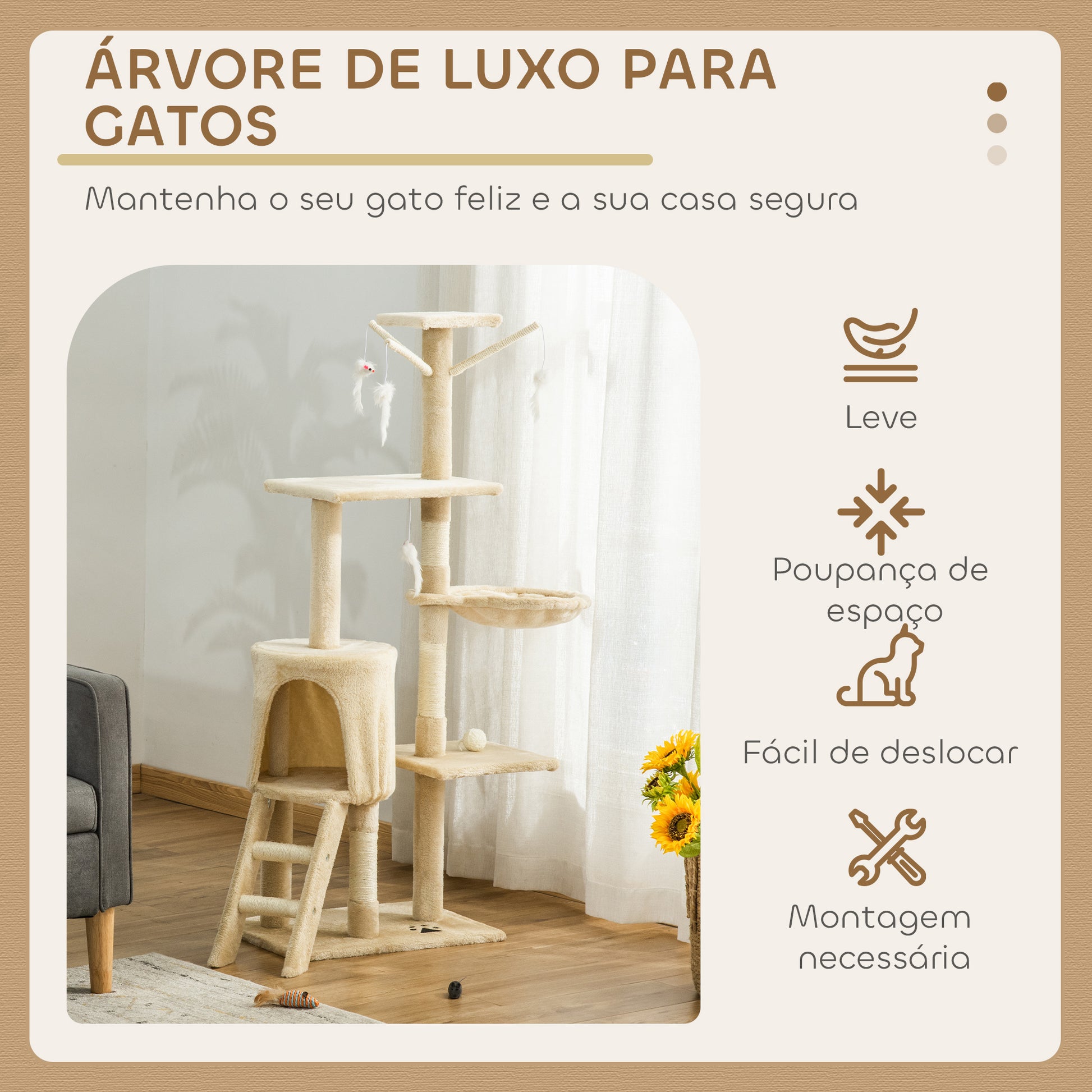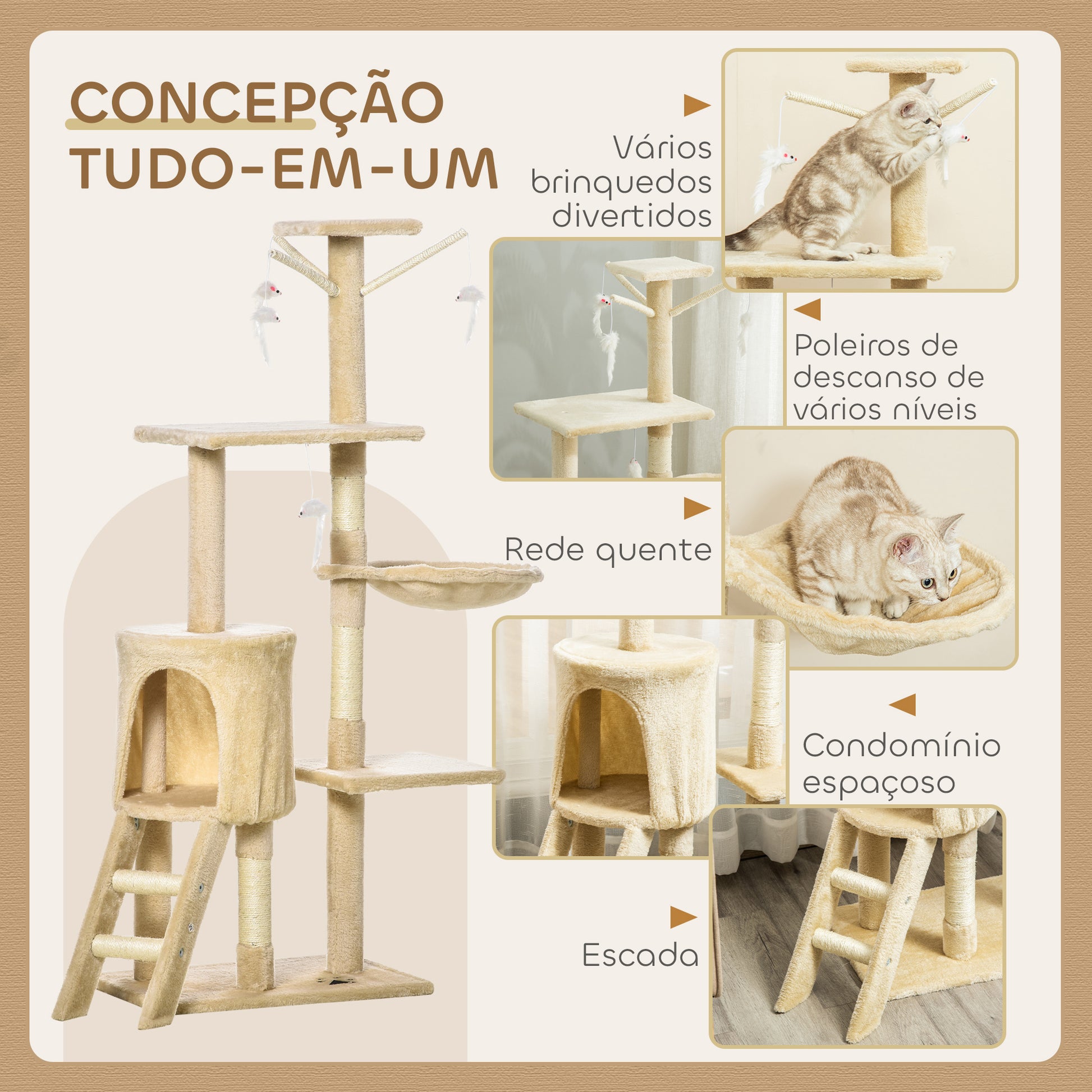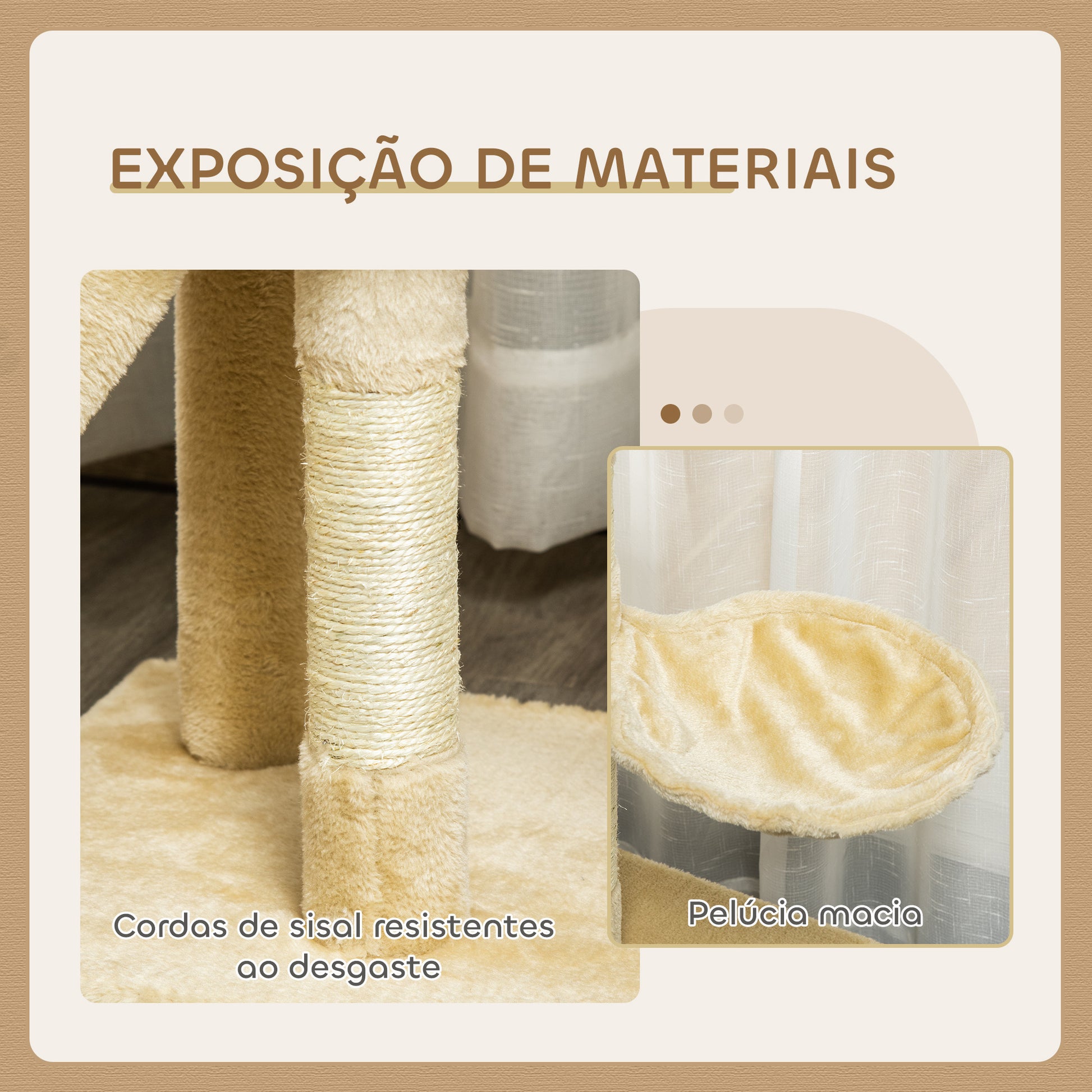 Este arranhador para gatos de 134,2 cm de altura e cor bege é o centro de atividades perfeito para o entretenimento do seu felino.