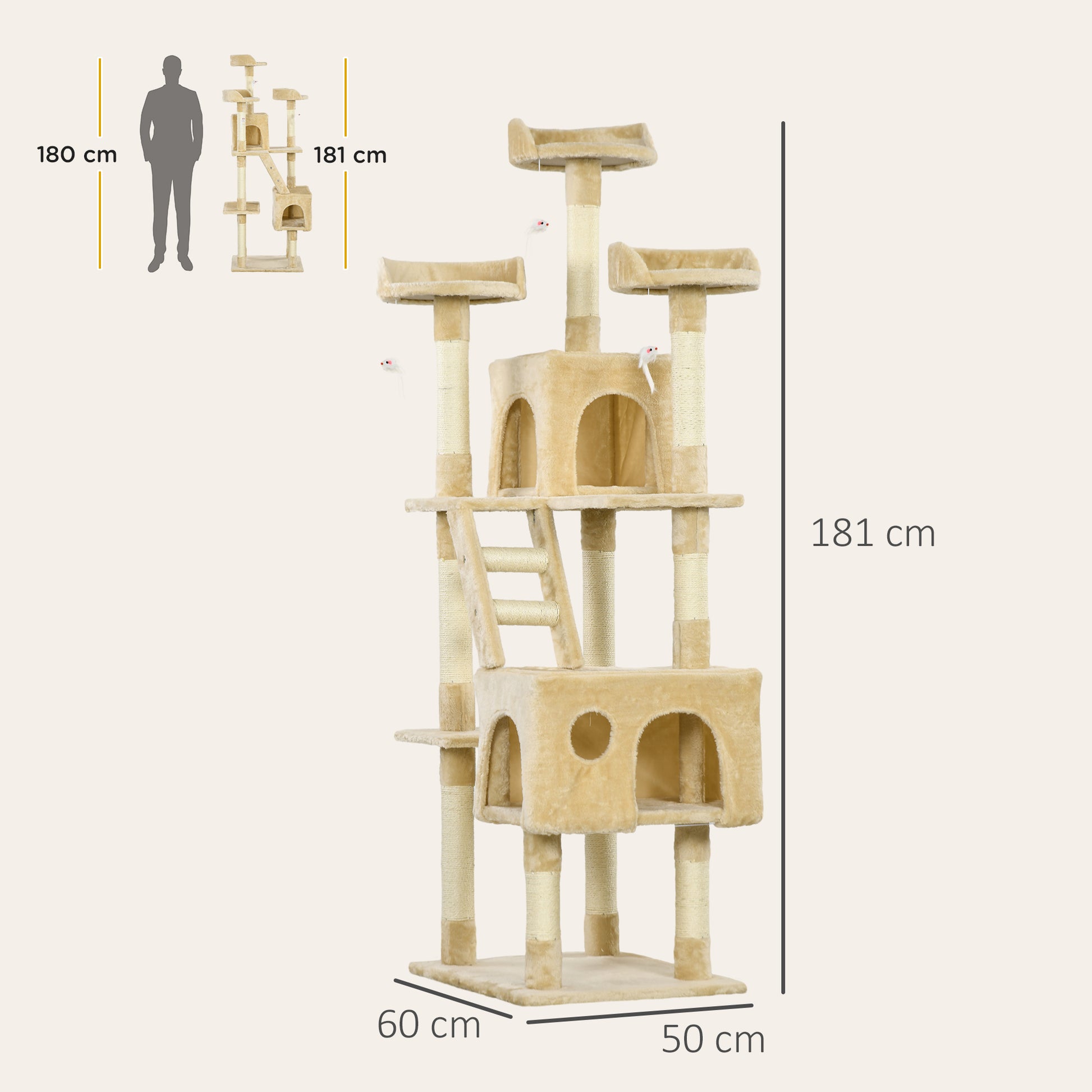 Proporcione diversão e exercício para o seu felino com este arranhador para gatos de alta qualidade, na cor bege e com medidas de 60x50x181 cm.
