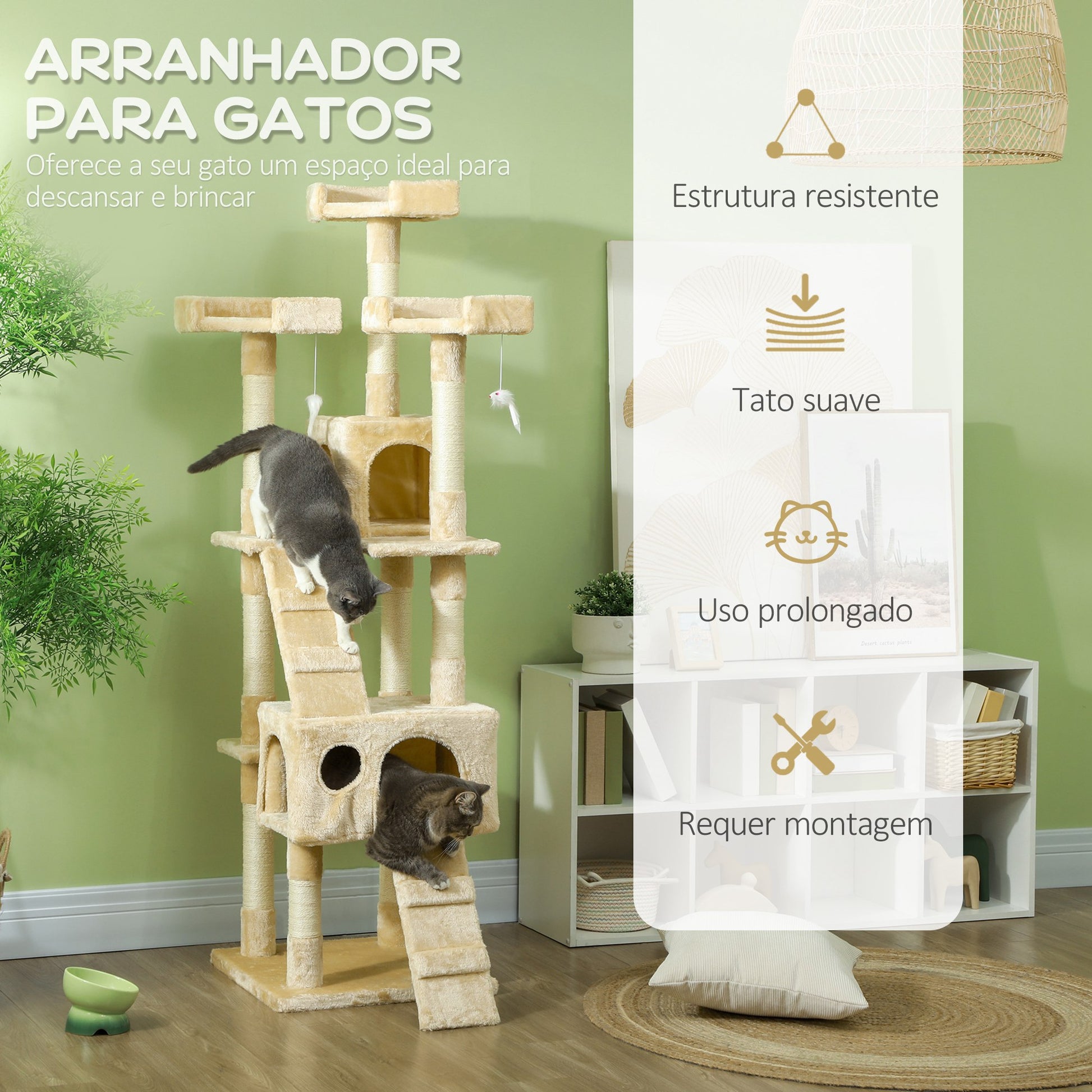 O Arranhador para Gatos Grande Bege de 49x49x173 cm é o centro de atividades perfeito para o entretenimento dos seus felinos. Com múltiplos níveis, cavernas acolhedoras, brinquedos suspensos e postes de sisal, este arranhador proporciona diversão e conforto aos gatos.