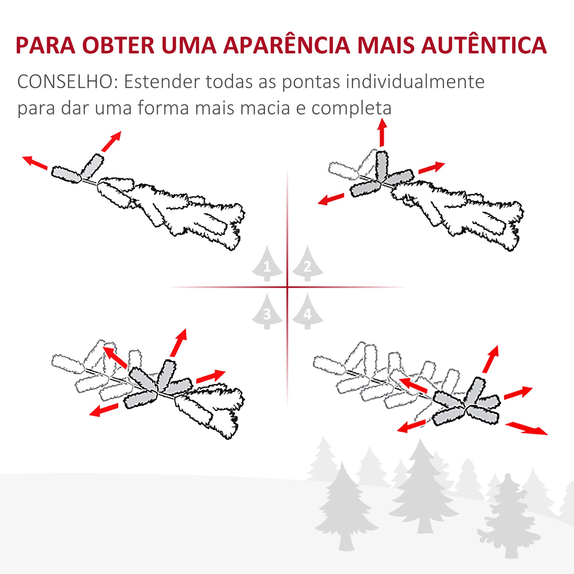 - Outras especificações relevantes: Base larga para apoio ao solo, pode ser montada e desmontada rapidamente, pacote inclui 1x Árvore de Natal e 1x Manual de instruções.