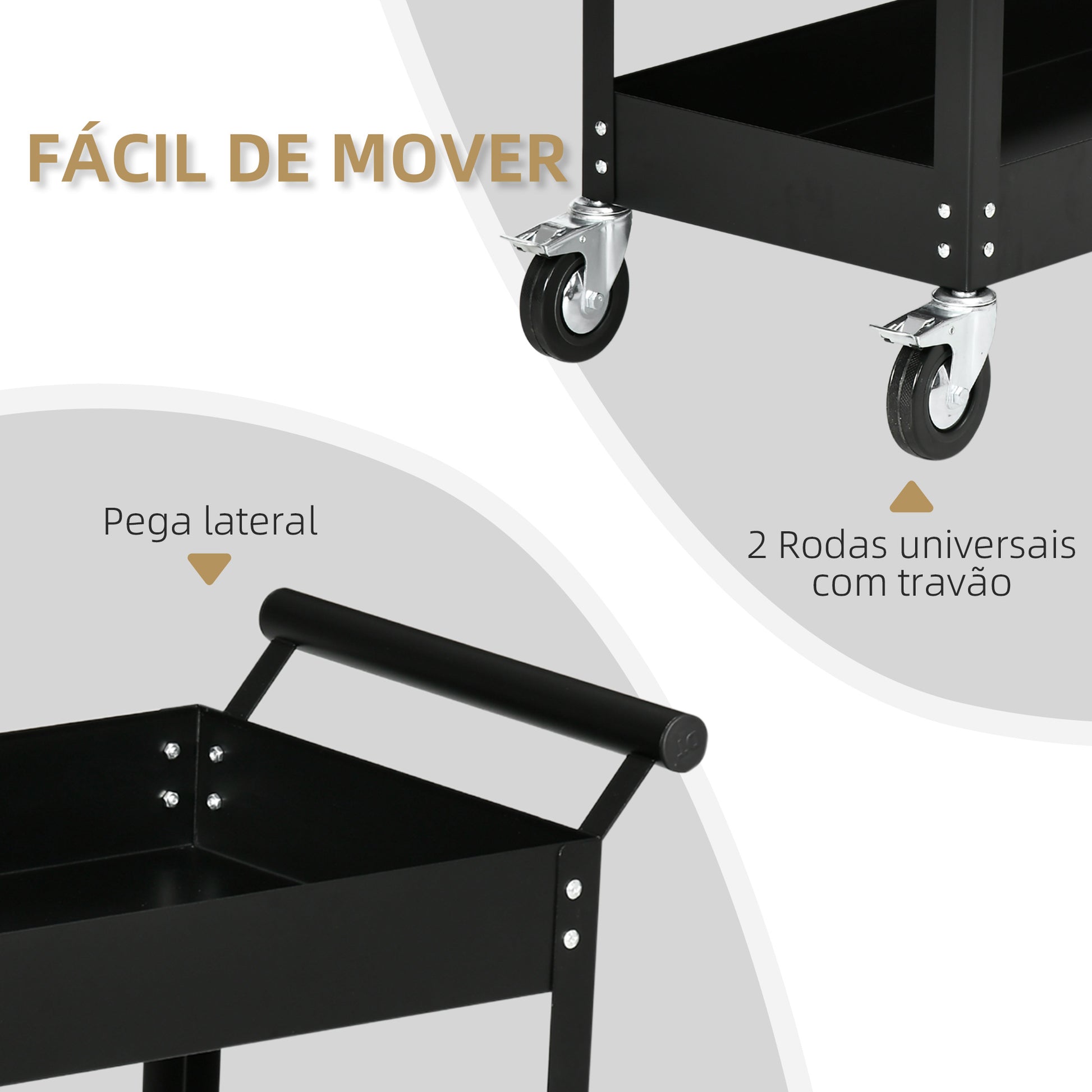 Carrinho de Ferramentas 2 Níveis – 84,5x38x84 cm – Preto – Aço