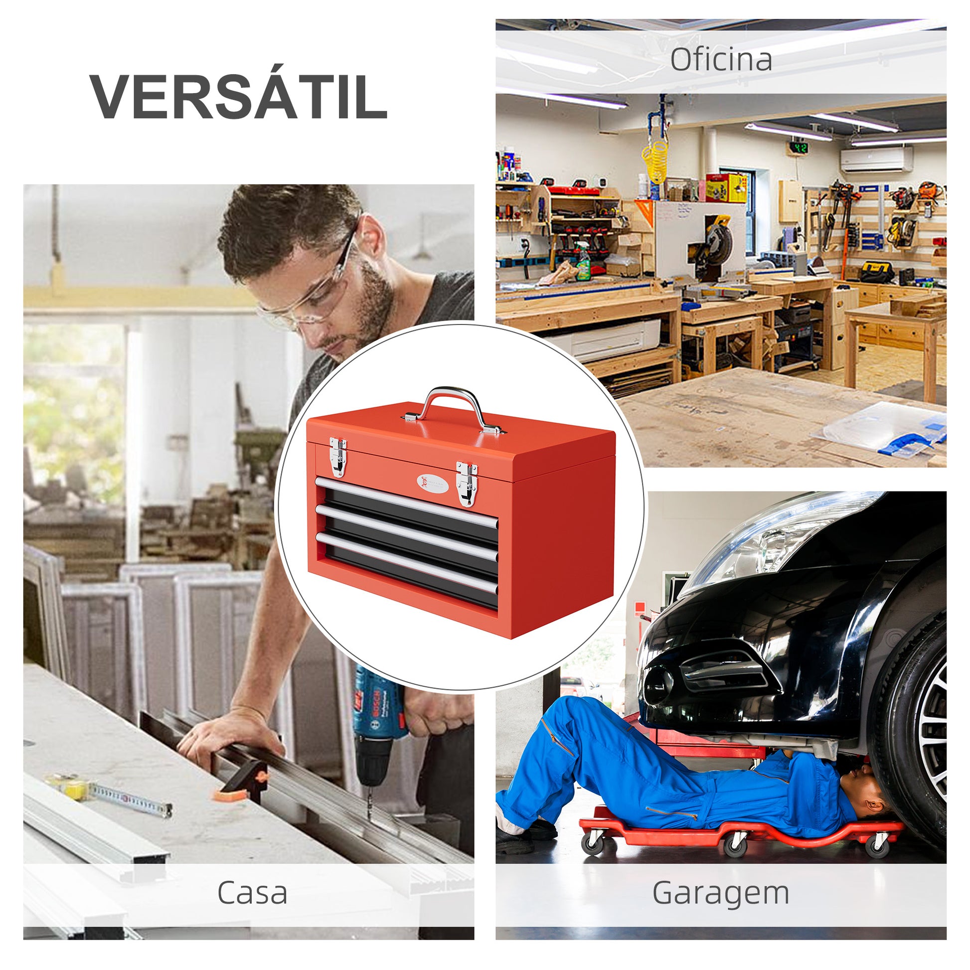 - Benefícios: Três gavetas deslizantes com corrediças de rolamento de esferas lisas, caixa superior e alça para transporte fácil.