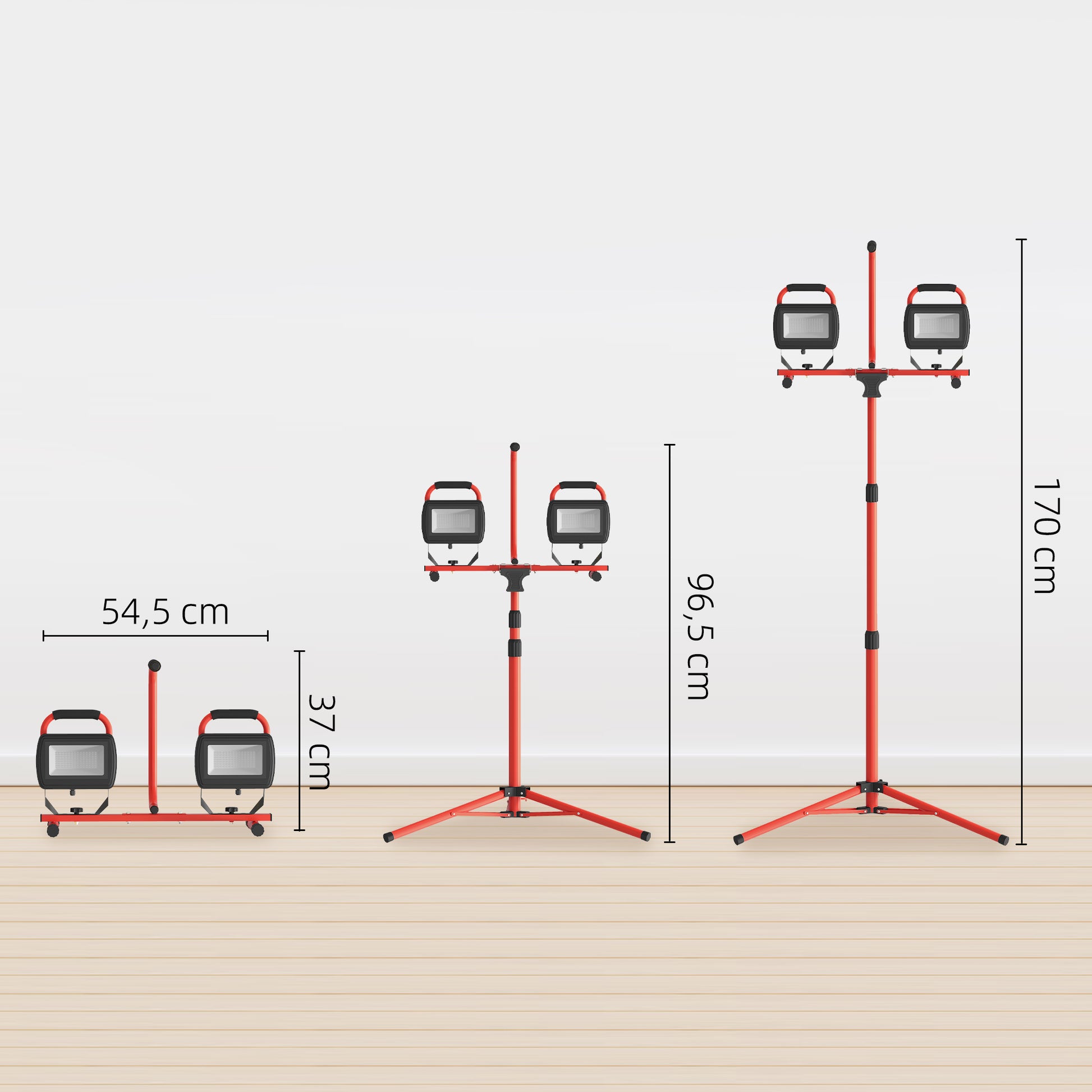 - Outras especificações: Cabeças das lâmpadas rotacionam 180°, tripé dobrável, montagem necessária