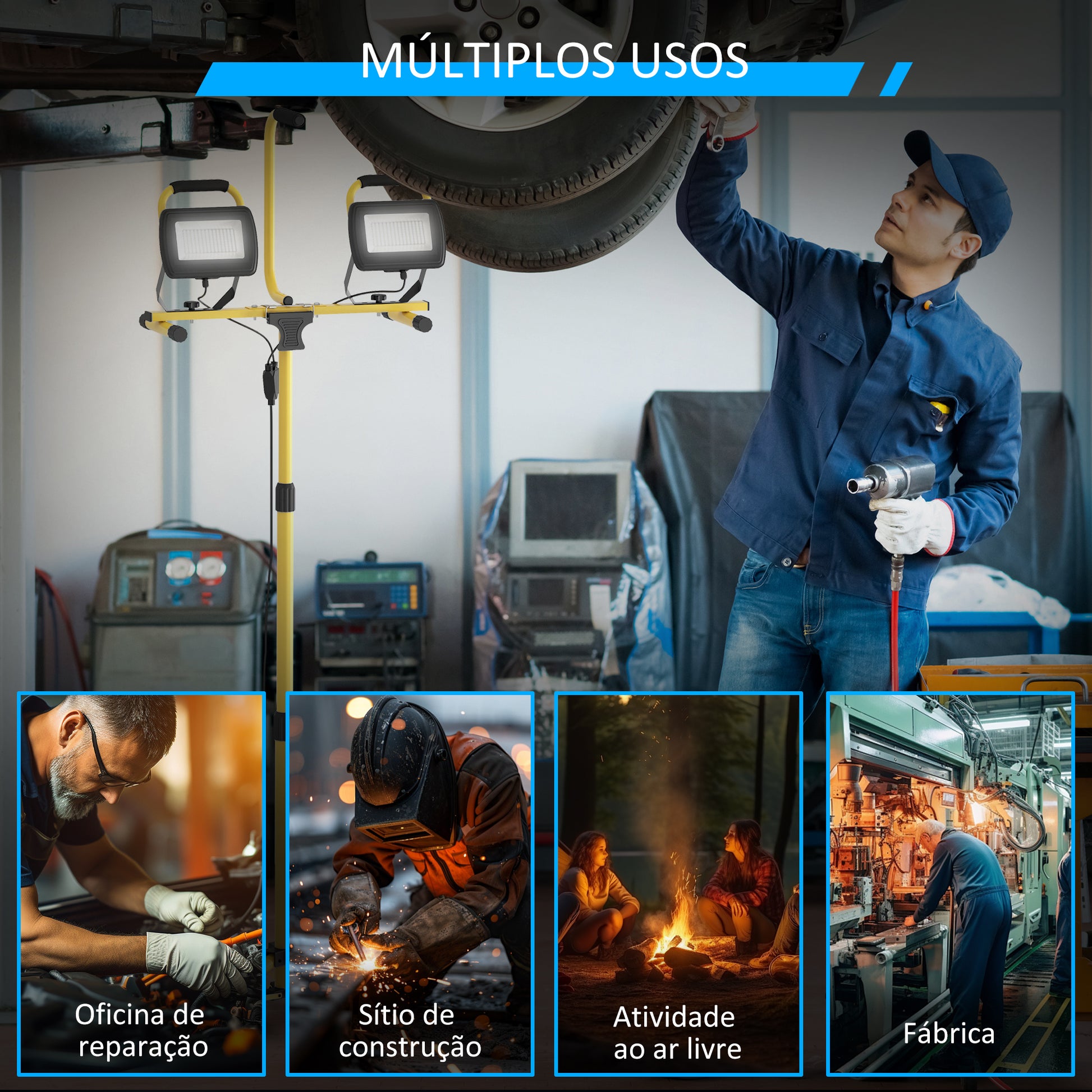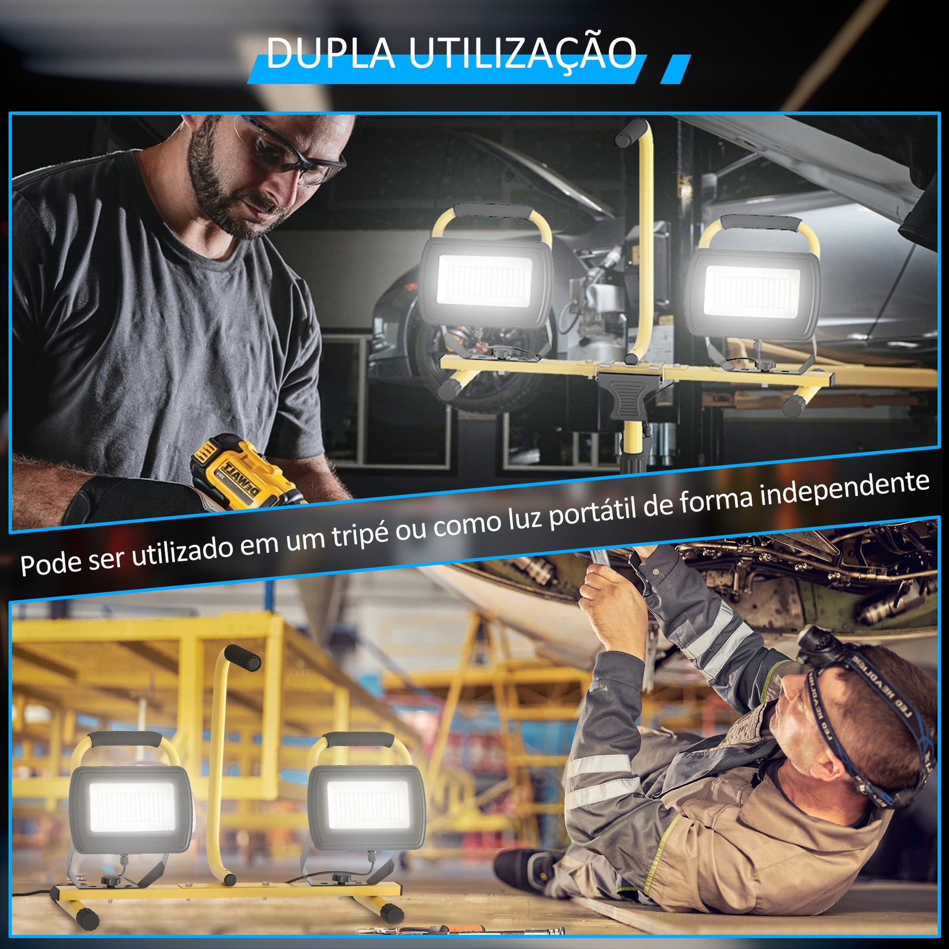 Ilumine com precisão e eficácia com o Projetor LED Duplo Recarregável Amarelo, uma escolha versátil e prática para diversas situações de trabalho. Não perca esta oportunidade de garantir a melhor iluminação onde quer que esteja!