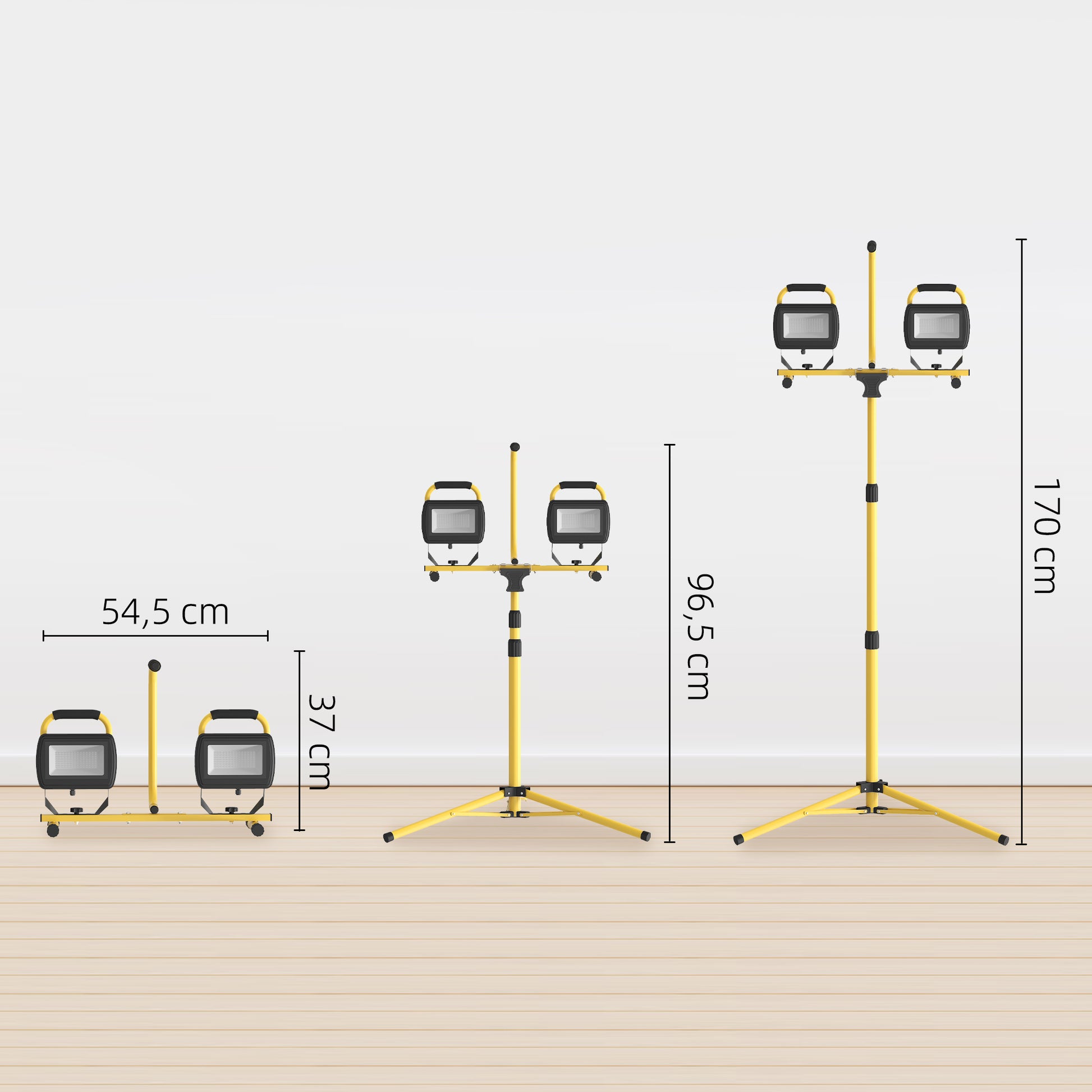 Projetor LED Duplo Recarregável – 77x68x170 cm – Amarelo – Alumínio e metal