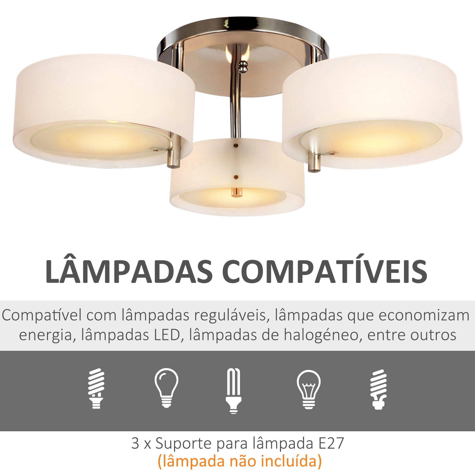 - Outras especificações relevantes: Requer 3 lâmpadas tipo E27 (não incluídas), potência máxima de 40W, voltagem de entrada 230V/50Hz