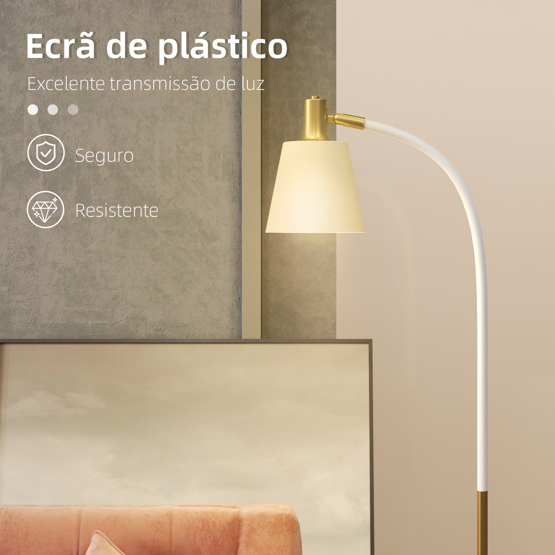 Procura um candeeiro de pé com um design moderno e elegante? Este candeeiro de pé branco com detalhes dourados é perfeito para dar um toque sofisticado ao seu espaço.