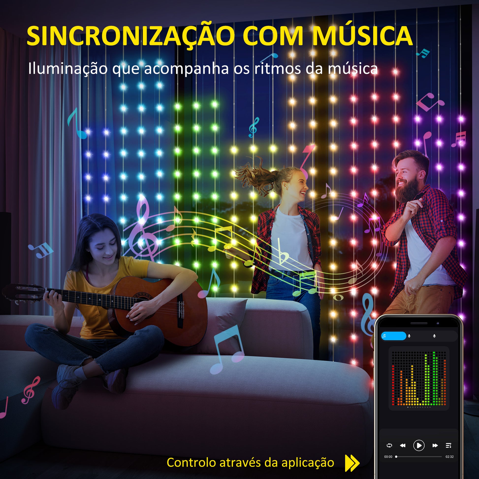 Transforme o seu espaço com esta cortina de luz LED inteligente de 300x300 cm, perfeita para criar ambientes únicos e personalizados.