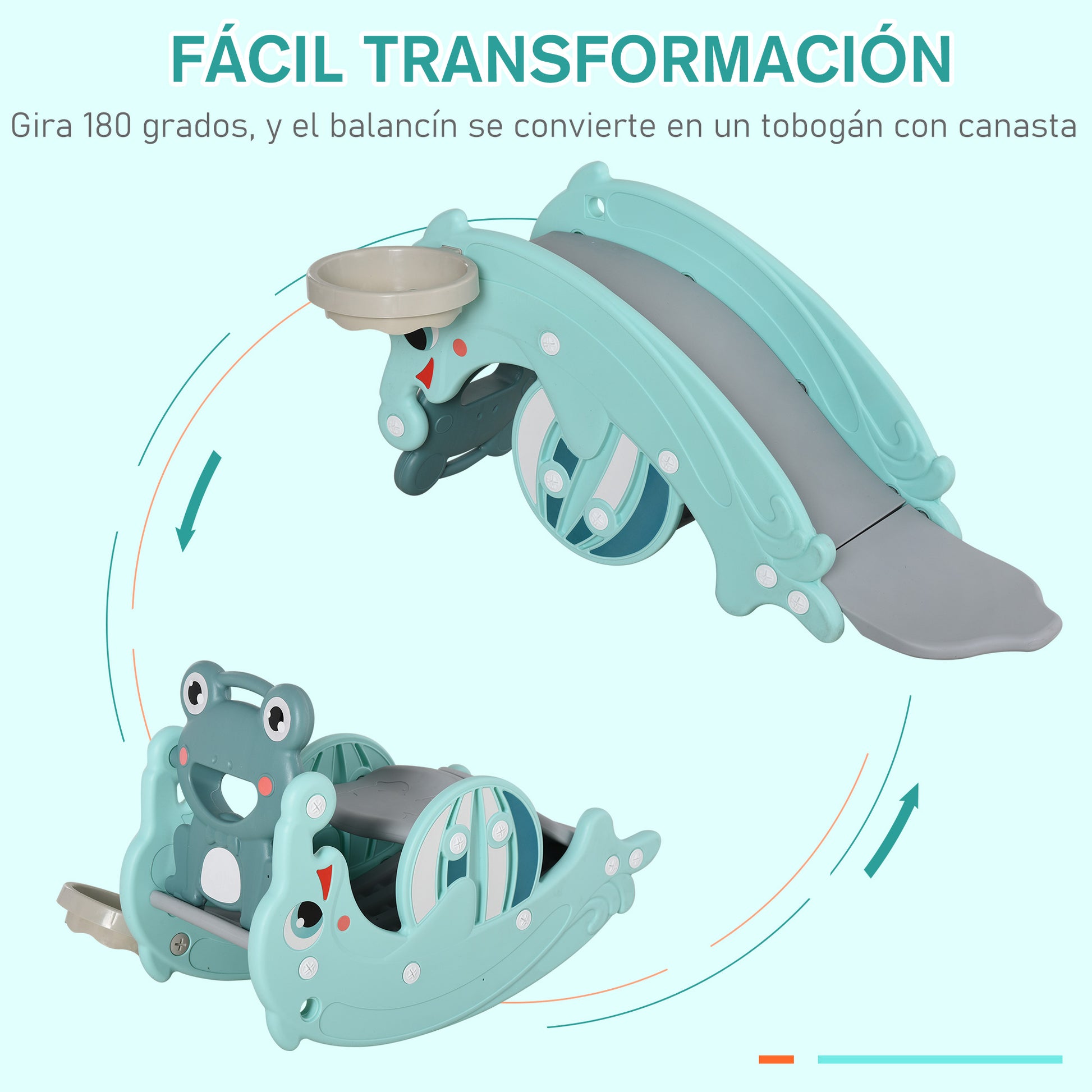 Balanço 3 em 1 Escorrega Golfinho e Cesta de Basquete 72x34x47 cm Verde