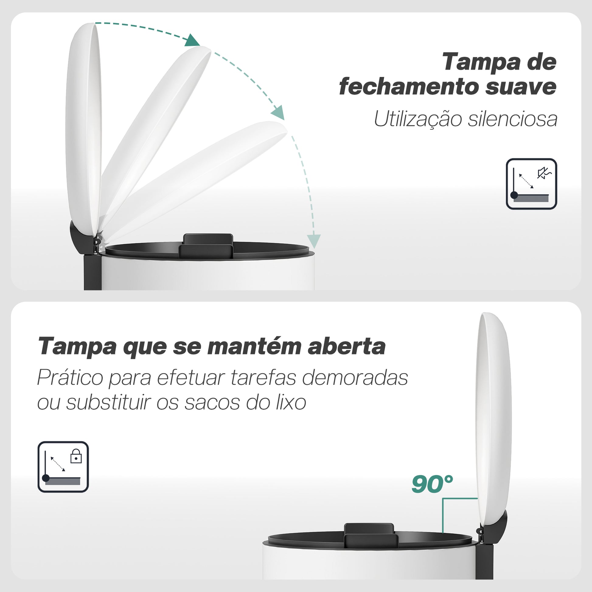 - Especificações: Tampa que fecha suavemente, balde interno removível para facilitar a limpeza, não requer montagem.
