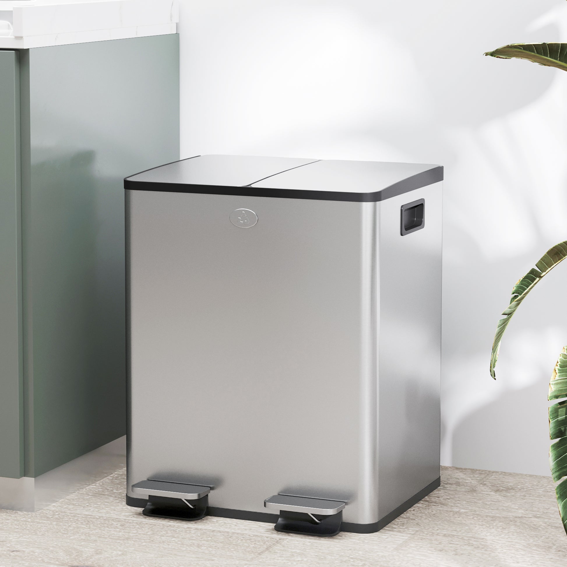 Balde de Lixo de Cozinha 2 Compartimentos 2x20L Aço Inoxidável Prata 41,7x36,6x56,7 cm