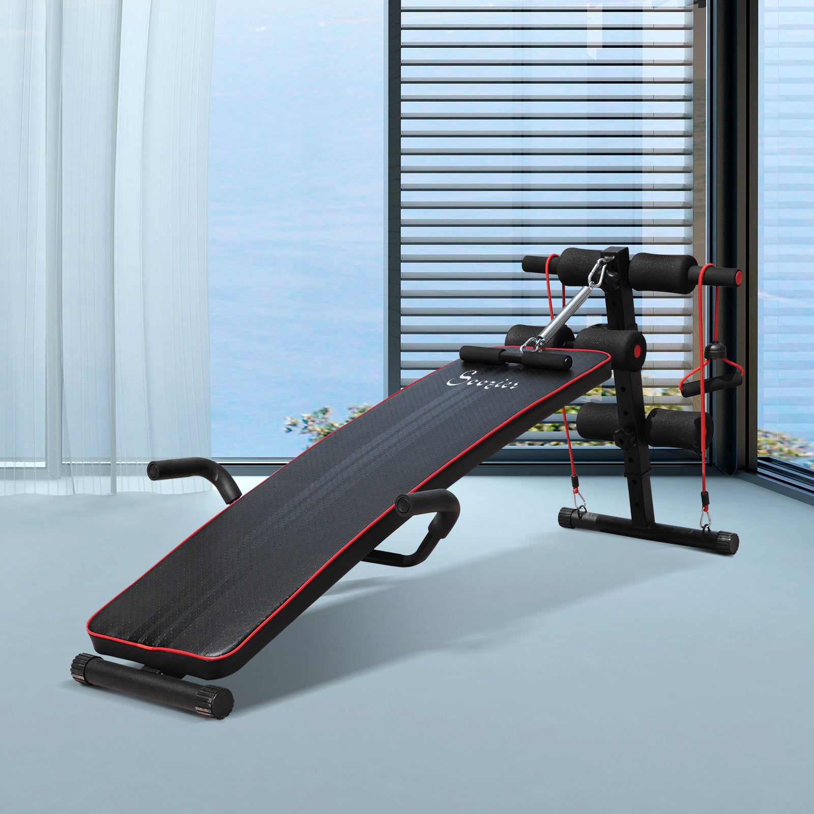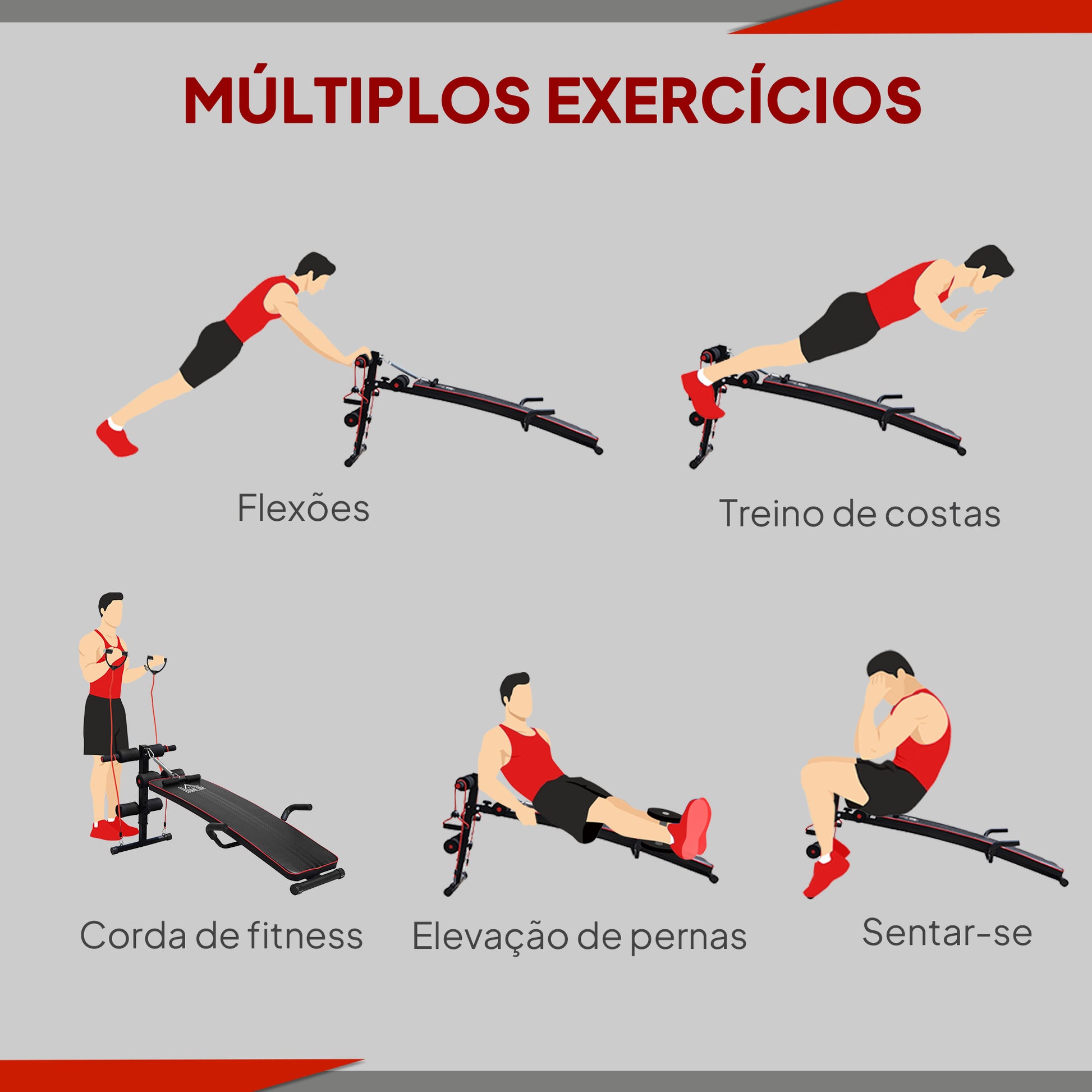 Este banco de exercícios ajustável é ideal para treinos de abdominais, costas e pernas. Construído com materiais de qualidade, oferece conforto e suporte durante os exercícios.