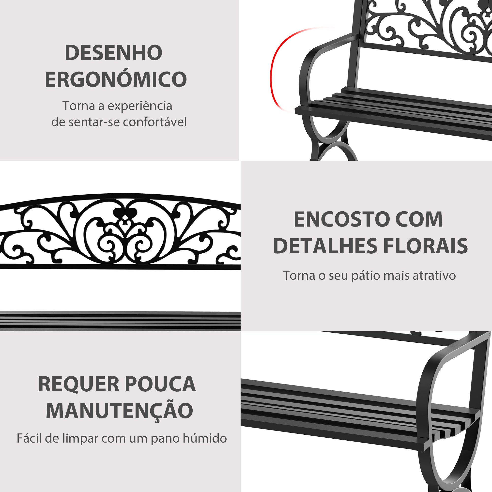 Aproveite o ar livre com estilo e elegância com este banco de jardim que combina funcionalidade e charme vintage.