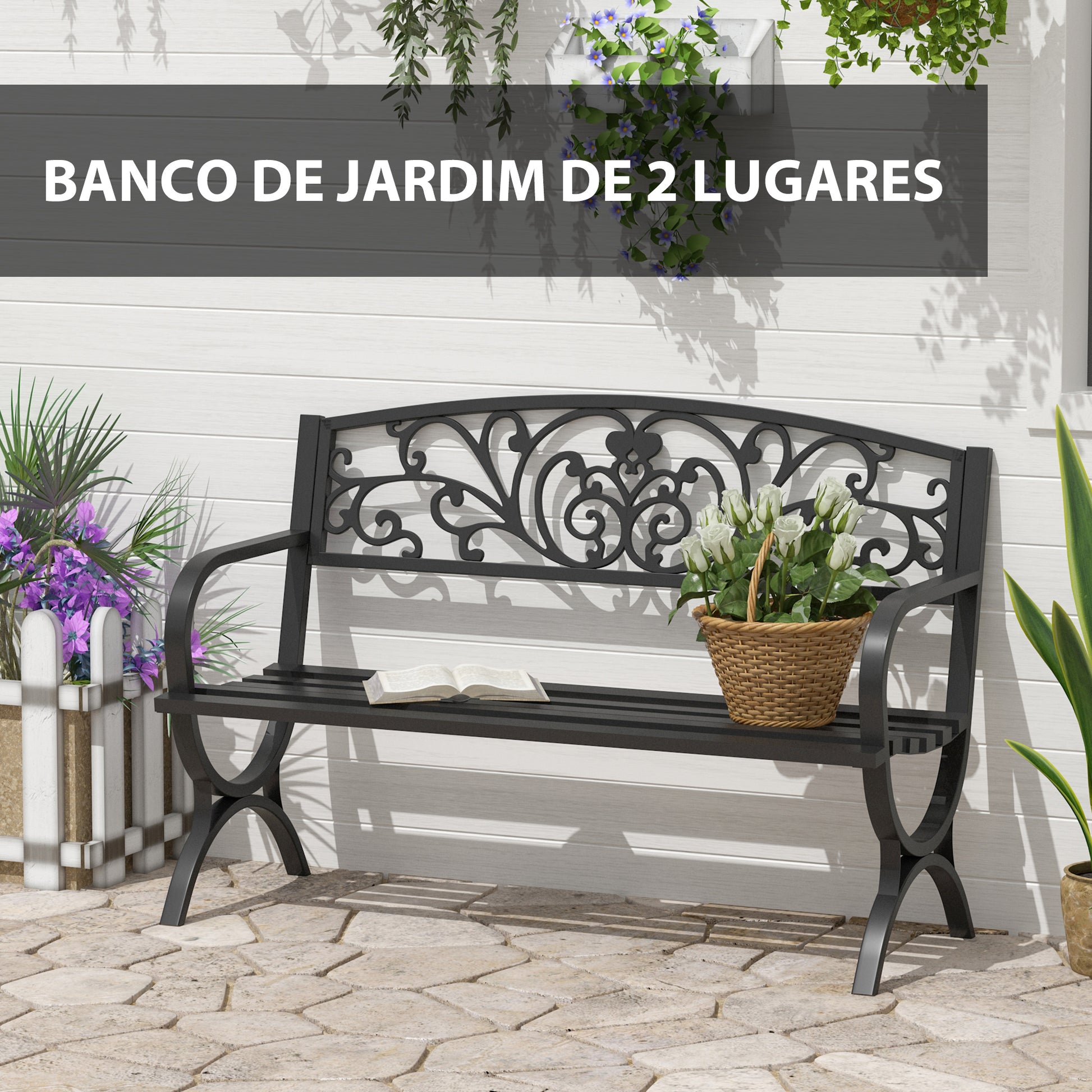 Este banco de jardim de 2 lugares é perfeito para adicionar um toque clássico e nostálgico ao seu espaço ao ar livre. Construído em ferro resistente, oferece conforto e durabilidade para desfrutar de momentos relaxantes no jardim.