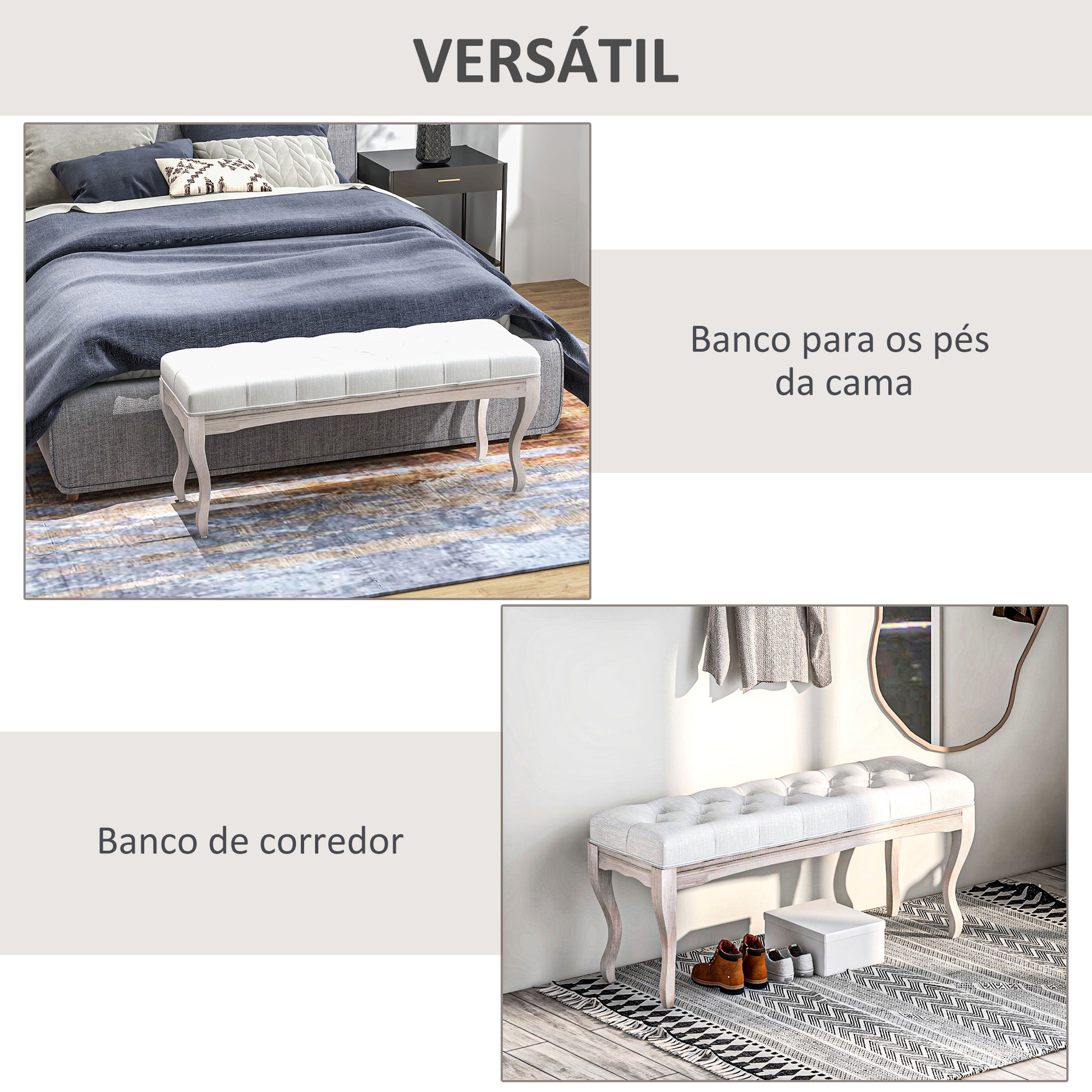 Banco Acolchoado Vintage Creme 110x37x49 cm
