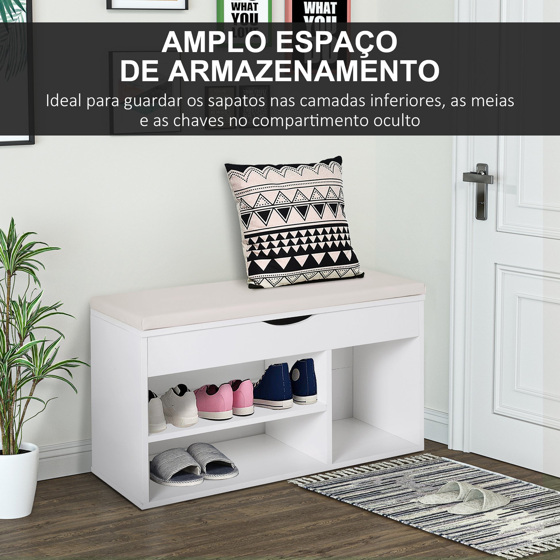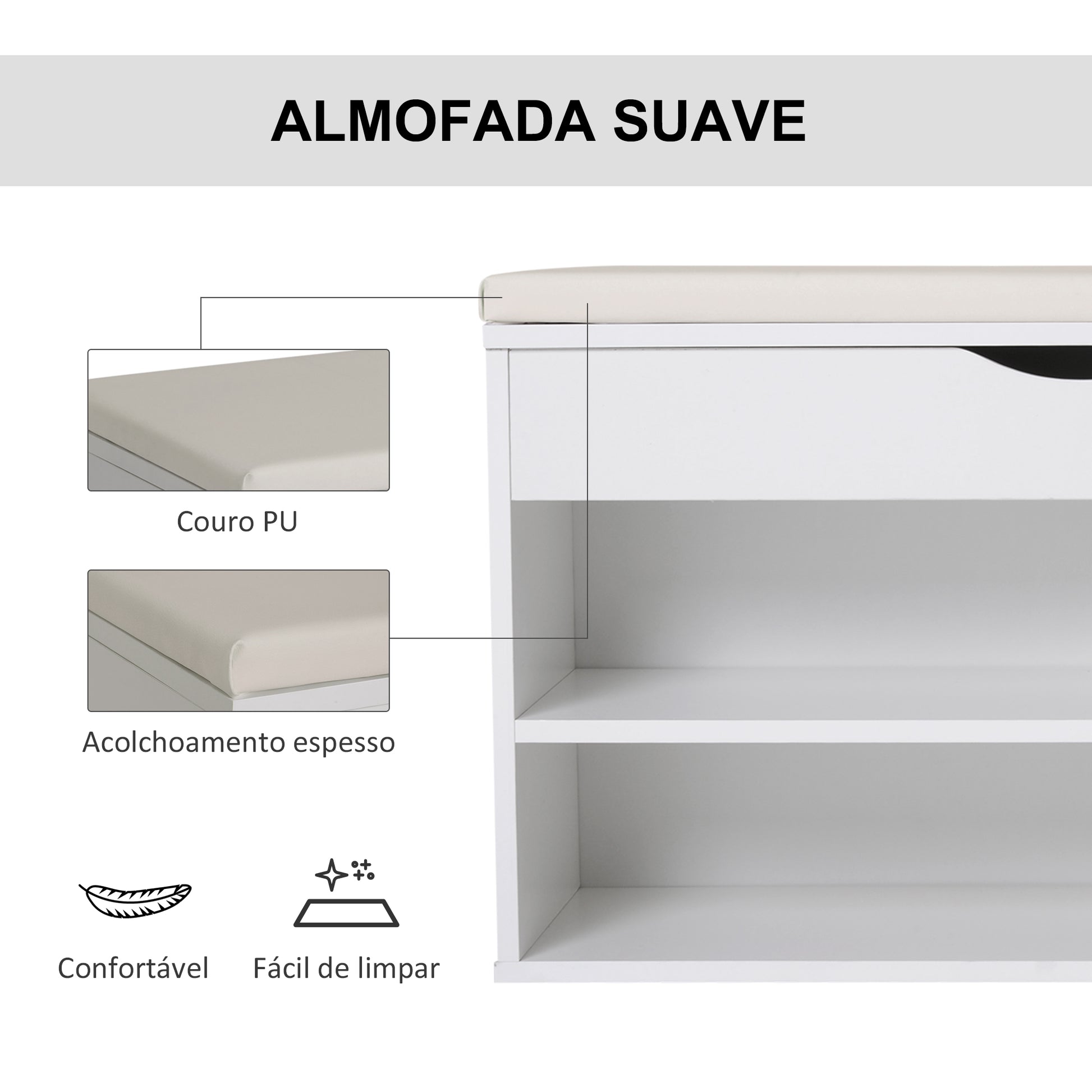 - Benefícios: Assento acolchoado em pele PU para maior conforto ao calçar os sapatos.